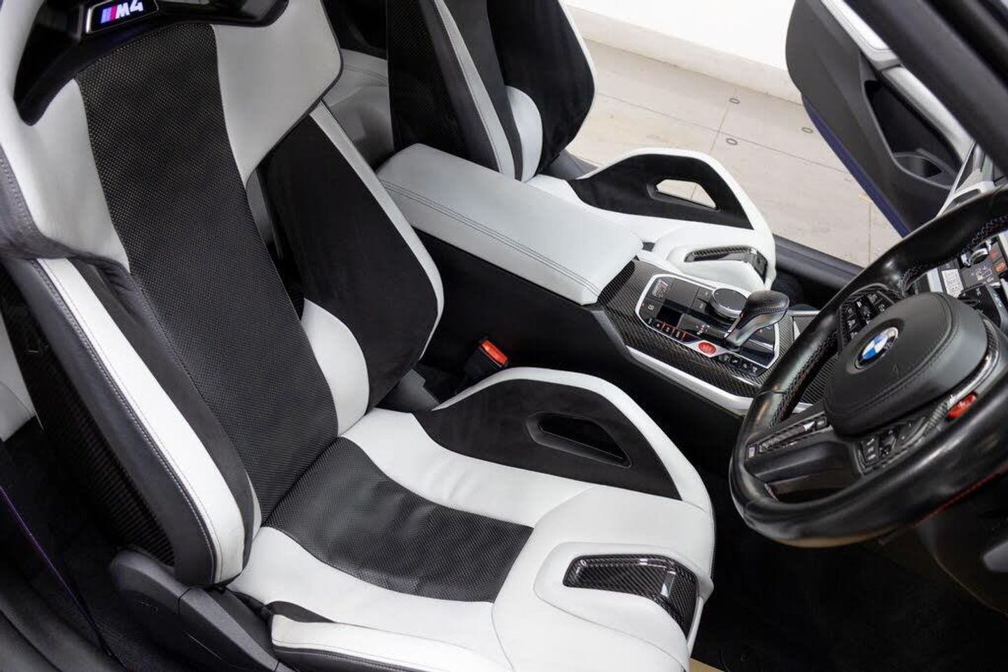 This 2021 BMW M4 BiTurbo Competition is a remarkable example of performance engineering. Featuring a potent 3.0L Euro 6 petrol engine, this model boasts the highly sought after M Carbon Package, which includes M Carbon Bucket Seats with memory function, and the M Carbon Exterior Package. Further enhancing its appeal is the Ultimate Package, offering adaptive cruise control, a 360 degree parking assistance camera, and a heated steering wheel. The striking 19 inch front and 20 inch rear M Double Spoke 825 alloy wheels in bicolour black complete the assertive stance of this Competition trim M4.Experience exhilarating performance with the M4's impressive 0-62mph acceleration in just 3.9 seconds, a testament to its BiTurbo Competition capabilities. This vehicle also offers practical advantages, including generous boot space for your everyday needs. Furthermore, its placement in a low insurance group makes it a more accessible choice for many drivers. These highlighted features demonstrate how this BMW M4 stands out from other vehicles in its class, offering a compelling blend of speed, luxury, and practicality.-ULTIMATESTUNNINGASK 4A VID