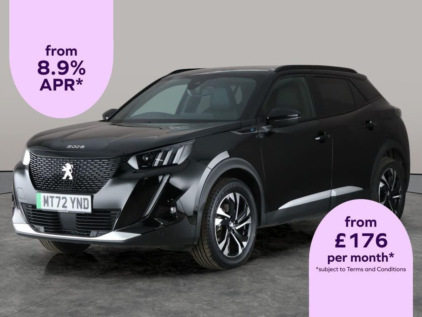 Experience the future with the Peugeot E-2008 GT. This striking black electric SUV boasts heated seats, a state-of-the-art sat nav, Apple CarPlay, and Bluetooth connectivity. Enjoy crisp, clear visibility with LED headlights and LED daytime running lights. Parking is effortless thanks to the reversing camera, while blind spot assist and traffic sign recognition enhance your safety on every journey. The E-2008 combines modern comfort, advanced technology, and stylish design, making it the perfect companion for your everyday adventures. 2 services recorded, last serviced on 31/08/2025 at 41,475 miles. MOT to 31/08/2026. Visit our website for service history, online valuation, full vehicle specification plus multiple images. This vehicle is VAT qualifying. Any feature/option specified here is from 3rd party data. We cannot guarantee the accuracy of any specification supplied by a 3rd party. We recommend that you physically check the specification of the vehicle on site prior to purchase. This information does not form part of the buying contract. Terms & Conditions apply. We have over 2,000 cars available from our 10 national branches, check our website to see all our stock. Our Trustpilot rating is 4.4/5 with over 9,000 reviews.