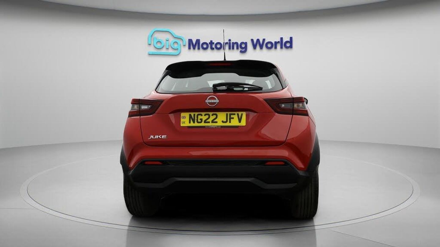 Bluetooth,Ambient Lighting-Our Nissan Juke is finished in Red. Specification includes a range of fantastic features including Bluetooth, Ambient Lighting, Cruise Control, Climate Control, DAB Radio , Touch Screen Control, LED daytime running lights, Multi Function Steering Wheel, Rear Spoiler, Air Conditioning Specification information is supplied by CAPHPI and may vary to the actual car. This data does not form any part of a buying contact. Please check specification prior to purchase in-store. The MOT is valid until June 2026, visit bigmotoringworld.co.uk for more photos, a 360 tour, service history and a free HPI report.Were BIG on peace of mind and this Red Nissan Juke has completed our comprehensive 200 point inspection and passed all checks. Its ready for you to drive away with immediate collection in-store. We include a 90-day warranty as standard plus an option to extend for up to 3 years.Reserve this car exclusively for you, safely and securely at bigmotoringworld.co.uk, with a fully refundable £99 deposit. Test drive before you buy, with no commitment, no hassle and a completely haggle free experience. Still searching and want to see thousands more cars? We are BIG on choice with over 8000 cars to choose from.Visit our award winning web site bigmotoringworld.co.uk.Were Big Motoring World and were BIG on what matters to you.