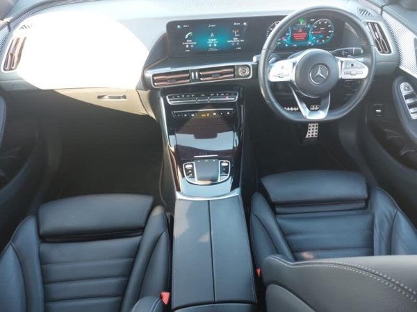 EQ navigation services - map (range display), display charging stations, programming of charging settings and pre entry climate control, Hard-disk navigation, Traffic sign assist, Mercedes me connect, Mercedes Benz emergency call system, Easy-pack tailgate, Mercedes Benz sound system with 4 mid range speakers, 2 tweeters, 2 Frontbass speakers, 1 centre speaker and 225 W amplifier output, MBUX multimedia system with 10.25" instrument and 10.25" media display with touchscreen, DAB Digital radio, Interior lighting - 64 colour Ambient lighting, Heated front seats, Dashboard in ARTICO man-made leather with metallised look finish and rose gold piping, AMG sports seats, AMG brushed stainless steel sports pedals with aluminium rubber studs, 3 spoke AMG multifunction sports steering wheel in nappa leather with chrome control panels and flattened bottom section with perforated grip area, Stowage package - EQC, Seat comfort pack - EQC, Parking package with active park assist with reversing camera - EQC, Mirror package with heated door mirror - EQC, Keyless go comfort package - EQC, Interior light package - EQC