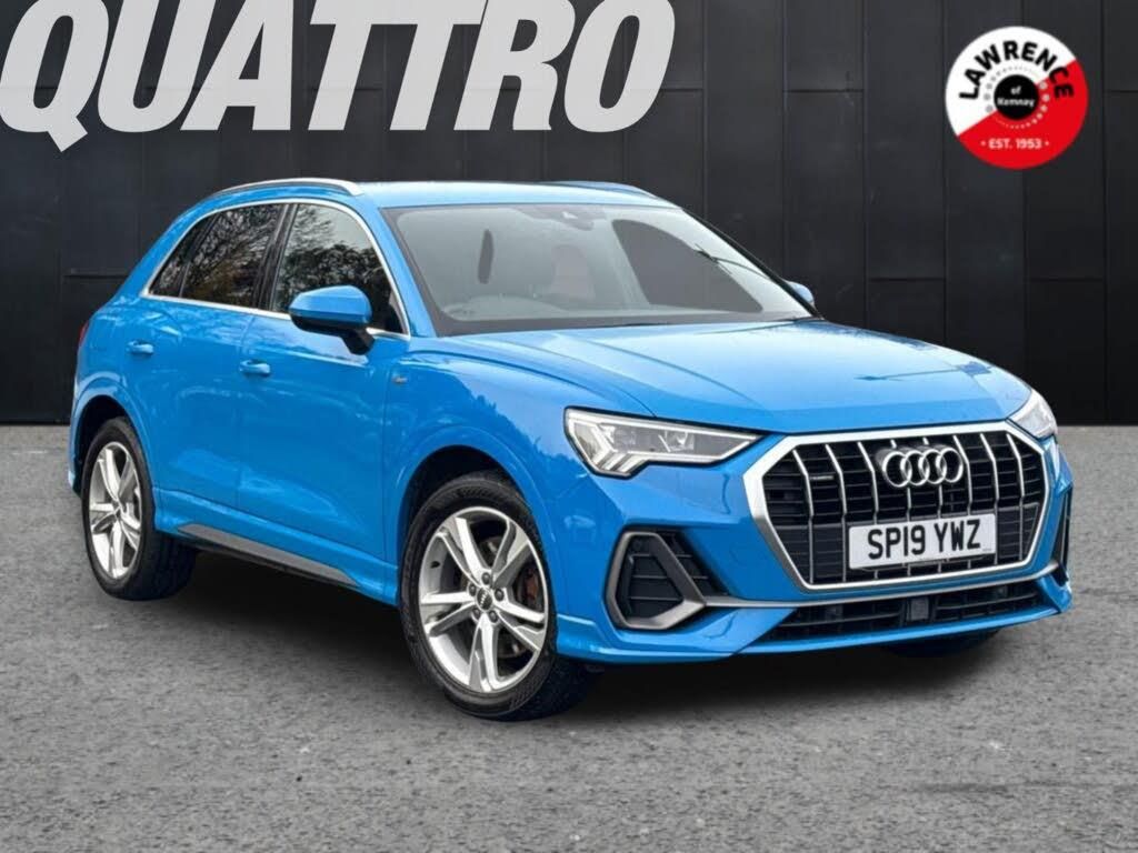 Audi connect safety and service (e-call), Audi drive select, Audi lane departure warning, Audi side assist, Audi smartphone interface, Audi Virtual Cockpit - 10.25" display, Bluetooth interface, MMI navigation plus with MMI touch, Power opening/closing tailgate, Progressive steering, Service interval indicator, Stop/start system, Voice control system, DAB digital radio module, Acoustic windscreen, Aluminium roof rails, Aluminium window trim, Auto dimming rear view mirror, Body colour door mirrors, Body coloured bumpers, Diffuser in matt Platinum grey, Electrically adjustable and heated door mirrors with integrated LED side indicators, Front and rear electric windows, Front fog lights, Front side air inlets in matt platinum grey, Front spoiler blade in matt platinum grey, Grille vertical bars in aluminium silver/Matt, High gloss black finish B and C pillars, Privacy glass, Rain and light sensors, Rear diffuser strip in selenite silver, S Line badge on wings, S Line front and rear bumpers, Side skirt insert in matt Platinium grey, Titanium black radiator grille, 12V socket in rear centre console, 40:20:40 split folding rear bench seat, Adjustable rear seat bench/backrest with centre armrest and cupholder, Aluminium door sill trims, Black cloth headlining, Dual zone climate control, Front and rear black floor mats with contrast stitching in rock grey, Front and rear headrests, Front centre armrest with storage compartment and angle adjustment, Illuminated door sill trims with S logo, ISOFIX child seat mounting and Top Tether with front passenger airbag deactivation, Perforated leather gearknob, Stainless steel luggage compartment sill finisher, Stainless steel pedals, Non smoking pack - Q3, 3x3 point rear seatbelts, 6 airbags - Driver, front passenger, curtain and side windows, Audi pre-sense front with pedestrain and cyclist recognition, Electronic stabilisation control including ABS, ASR and EDL, Hill hold assist, Pre sense basic, Seatbelt monitoring, Tyre pressure warning, Warning triangle and first aid kit, Anti theft alarm, Anti theft wheel bolts, Remote central locking, Dark matt brushed aluminium inlay, MMI touch colour display in gloss black with aluminium surround
