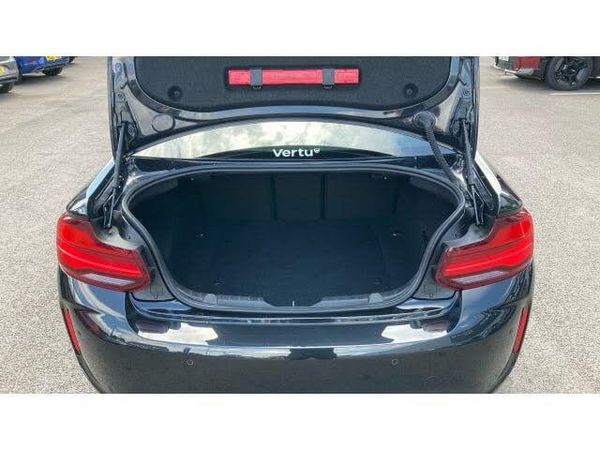 Anthracite Velour floor mats, Heated windscreen washer jets, Automatic Stability Control (ASC), M sport suspension, Rear parking distance control, Auto start-stop, BMW Online services, Body colour mirror caps, Carbon fibre interior trim with black high gloss finish, Battery age recognition function, DAB Digital radio, Body colour door handles, Darkened rear lights with LED light bars, Automatic two zone climate control air conditioning, Front sliding armrest, Lights on warning by audio warning signal when ignition is switched off, Extended lighting pack - 2 Series, Warning triangle and first aid kit, Front head restraints, Locking wheel bolts, Reduced rolling resistance tyres, BMW mobility system