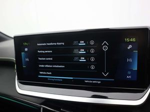 12V Power Socket,17in Alloy Wheels - Shaw - Diamond Cut Two-Tone,6-Speaker Radio - MP3 Compatible,7KW Monophase On Board Charger,8-Colour Customisable Ambient Lighting,ABS with Electronic Brake Force Distributor EBD and Emergency Brake Assist EBA,AVAS - Acoustic Vehicle Alerting System,Active Safety Brake - Night Function - Cyclists - Pedestrians,Air Conditioning - Automatic,Airbags - Adaptive Driver and Front Passenger,Airbags - Curtain Front and Rear,Airbags - Driver and Front Passenger Side,Alarm - Thatcham Category 1 Approved,Automatic Door Locking When Moving Off,Automatic Hazard Light Activation Upon Heavy Brake Application,Blind Spot Monitoring,Bluetooth Telephone Facility,Carpet Mats,Central Front Armrest with Storage Compartment,Child Locking Functionality on Rear Doors,Compact Automatic e-Toggle Gearbox Impulse Selector,DAB - Digital Audio Broadcasting,Dark Tinted Rear Side and Tailgate Windows,Dashboard - Front and Rear Door Panel Finish - Carbon Effect,Deadlocking,Diamond Black Roof,Dichroic Badging including - Front Lion - E Monogram on C Pillar and Tailgate,Door Mirror Shells - Nera Black,Drive Assist Pack Plus - Adaptive Cruise Control with Stop-Go-Lane Positioning Assist,Driver Attention Warning,Driver and Front Passenger Seat Mechanical Height Adjustment,Driver and Front Passenger Sport Seats,ESP - Electronic Stability Programme with Hill Start Assist,Electric - Heated and Power Folding Door Mirrors,Electric Parking Brake,Electric Power Steering with Reach and Rake Adjustable Steering Column,Electronic Code Immobiliser,Exterior Door Handles - Body-Colour,Exterior Temperature Indicator with Ice Warning,Frameless Electrochrome Rear View Mirror,Front Optimised Safety Headrests and Rear Retractable Headrests - x3 - Height-Adjustable,Front Three-Point Retractable Seatbelts with Force Limiters,Front USB Socket x2 including x1 USB-C,Full LED Headlights with Smartbeam Assist,GT Line Model Designation Badging on C Pillar,GT Model Designation Badging on Tailgate,Gloss Black B Pillar,Gloss Black Rear Cluster Connecting Strip,Gloss Black Wheel Arch Extensions,Gloss Black Window Surround,Headlights Left On Audible Warning,High Centre Console with 2 Cup Holders,ISOFIX Child Seat Fittings - x2 - Second Row,ISOFIX with Top Tether on Passenger Seat,LED Daytime Running Lights - 3-Claw Headlight with Distinctive Tooth Design,LED Front Interior Light with Reading Spotlights -x2- and Rear Interior Light with Timer,LED Side Indicator Lights Integrated into Door Mirrors,Lane Keeping Assist,Lime Green Contrast Stitching to Armrest - Front Centre Console - Door Panels - Dashboard Fascia,Map Pockets on Front Seat Backs,Mirror Screen - Apple CarPlay and Android Auto,Mistral Full-Grain Perforated Leather Steering Wheel with Aikinite Stitch Detail and Satin Chrome GT Emblem,Mode 3 Type 2 Cable for Wallbox Charging,Model Designation Badges - Front and Rear,Multifunction Trip Computer,One-Touch Electric Front Windows with Pinch Protection,One-Touch Electric Rear Windows with Pinch Protection,PEUGEOT 3D i-Cockpit - Configurable 3D Head-Up Instrument Panel,PEUGEOT Open and Go System,PEUGEOT Scuff Plates,PEUGEOT i-Cockpit 10in Capacitive Colour Touchscreen with Connected 3D Navigation includes TomTom Live Updates (3 Year Subscription From New),PEUGEOT i-Cockpit Compact Steering Wheel,Peugeot Connect SOS and Assistance,Peugeot Door Sills,Piano Keys - Gloss Black Plated Toggle Switches to Access Main Functions of Vehicle,Pre-Heating Functionality,Programmable Cruise Control and Speed Limiter,Puncture Kit,Radiator Grille - Dark Chrome Chequered and Gloss Black Edge Trim,Rear Bumper - Gloss Black Finish,Rear Full LED 3D Peugeot Signature Claw Effect Lights with Daylight Function,Rear Lower Bumper Gloss Black Diffuser Effect Trim,Rear Number Plate Lights x2,Rear Reversing Lights,Rear Spoiler - Diamond Black,Rear USB Socket x2,Rear Windscreen Wiper Triggered Automatically in Reverse Gear,Roof Lining - Mistral Black,Roof Mounted Aerial with Fin Design,Seatbelt Unfastened on the Move Audible and Visual Alert for Front and Rear Seats,Seating - Driver and Front Passenger Seat Manual Adjustment - Longitudinal and Back Rest Angle,Seating- 1-3 - 2-3 Folding Rear Seat,Smartphone Docking Station,Speed Limit Recognition and Recommendation,Tailgate with Heated Rear Windscreen and Wiper Blade,TomTom Live Services (3 Year Subscription from New),Tyre Pressure Sensors,Visibility Pack,Visio Park 1 - 180 Degree Colour Reversing Camera,Voice Recognition - Radio-Navigation-Telephony Features,e-Toggle Driving Selector