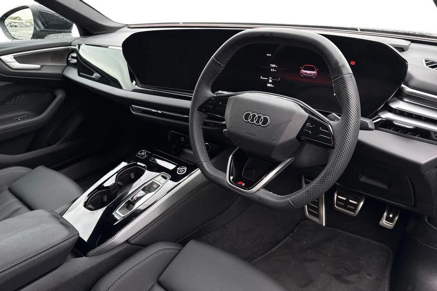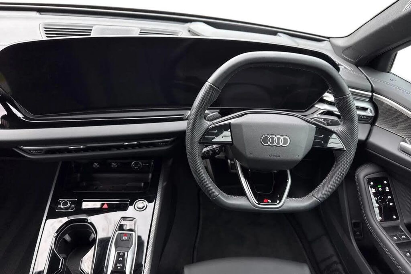 Head-up display,Leather/leatherette combination with embossed "S",Interior S with sport seats in leather/artificial leather combination - Black,S line exterior styling,Privacy glass,Ambient lighting package plus with dynamic interaction light,Sports seats in front,Wraparound interior elements in artificial leather,USB interfaces with higher charging capacity,Stainless steel pedals and footrest,Door sill trims with aluminum inlays - front - illuminated - S logo,Equipment package for Great Britain,Sound and Vision Pack,Internal control code,Sport suspension,Sport leather steering wheel - 3-spoke - flat top and bottom with multifunction and shift paddles,S line bumpers,19" x 8.0J '5-twin v-spoke' design alloy wheels in graphite grey with 245/40 R19 tyres,Inlays - matt brushed aluminium with linear embossing - anthracite,Front head restraints,Comfort center armrest - front,Steering wheel trim in chrome look - "S" emblem - steer. wheel side parts in perforated leather - contrast stitching,Headlining in cloth - Black,Upper and lower interior elements with contrasting stitching,4-way lumbar support for the front seats,Bang & Olufsen premium sound system with 3D sound and integrated headrest speakers,MMI experience pro,Interior equipment 10,Equipment options subset for Great Britain,Sound and Vision Pack
