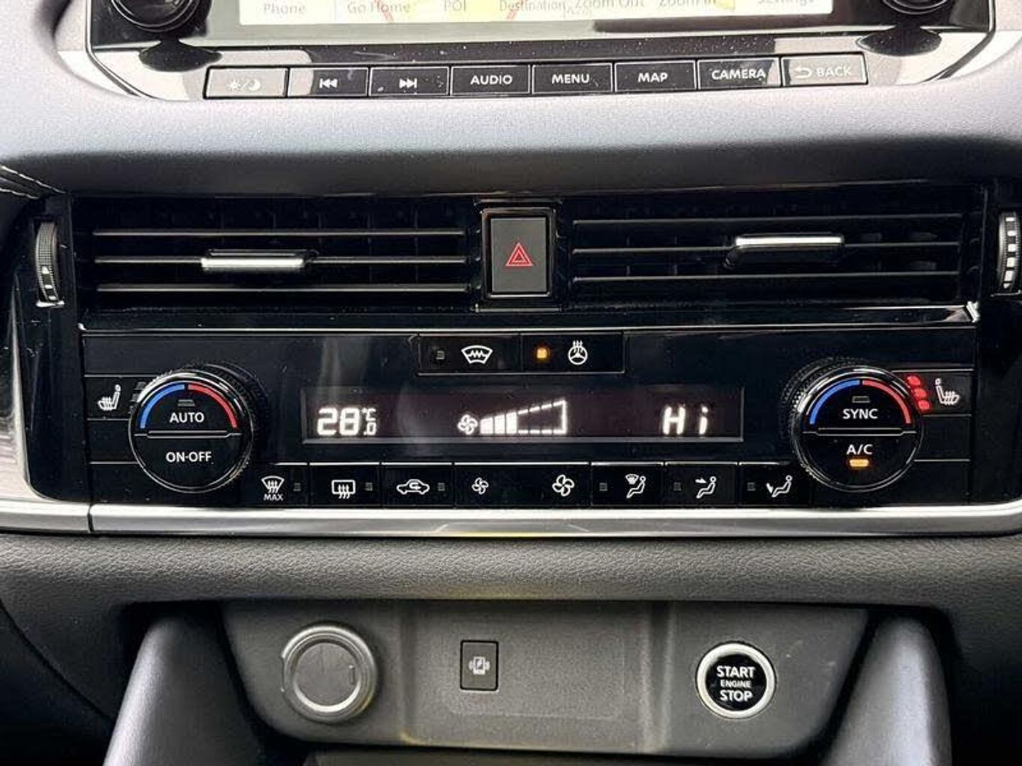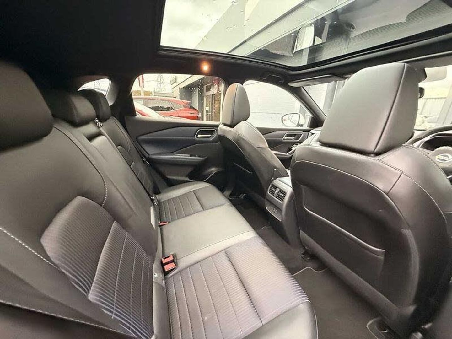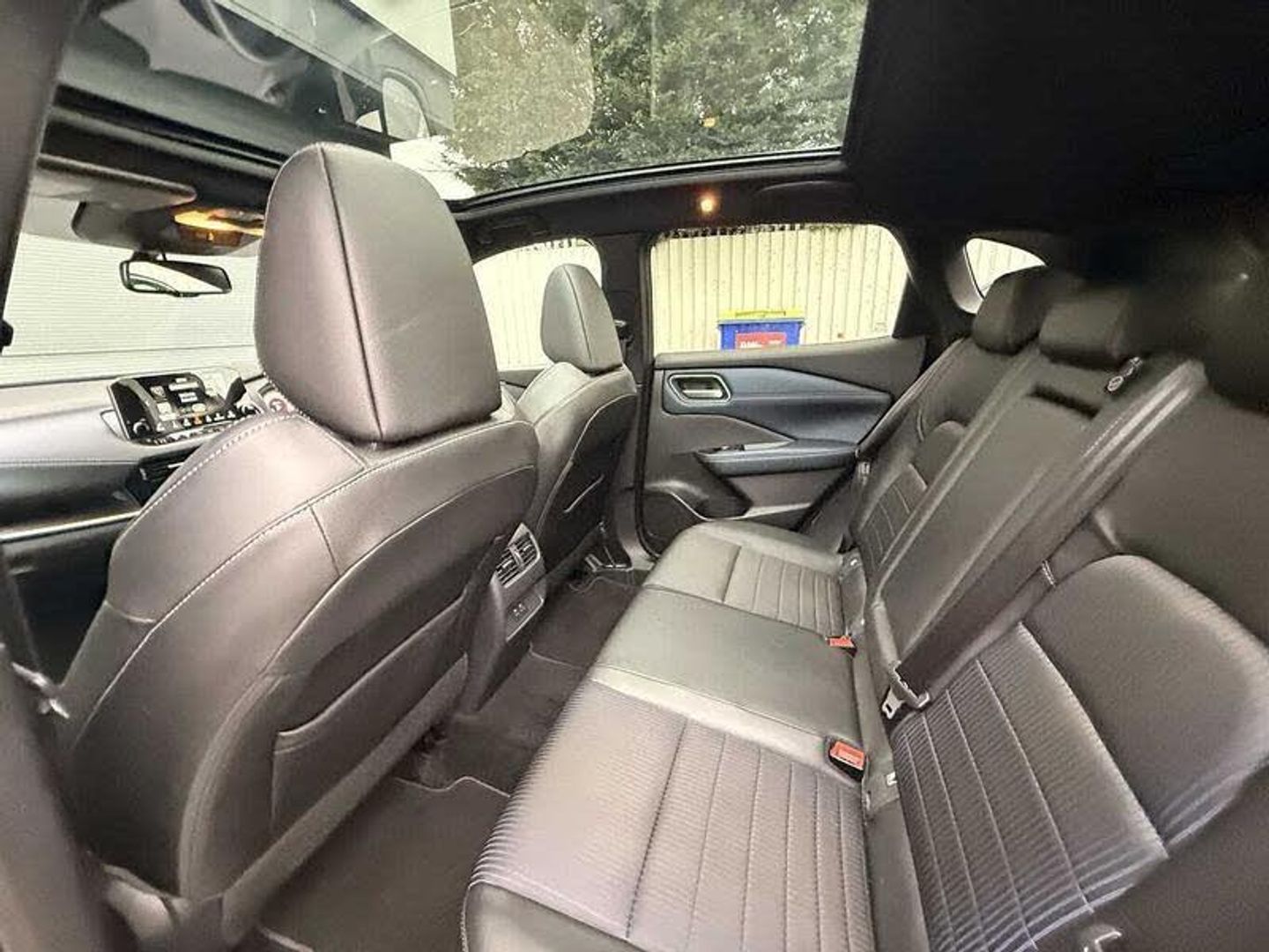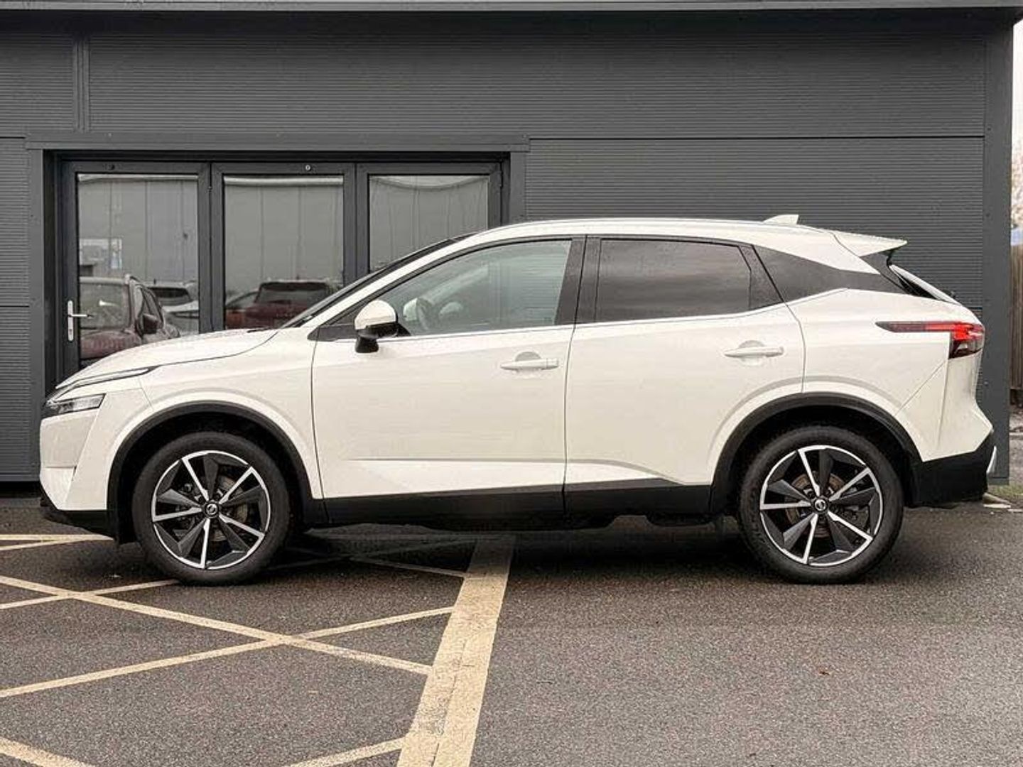 Exterior Features, Pearlescent paint, Wheels, Tyre puncture repair kit, Paint - Pearlescent, Pearl - Storm white, Trim - Part Leather, Cloth/syntech leather monoform - Blue black, Exterior Features, Auto rear wiper when reversing, One touch front and rear electric windows with remote opening and closing, Privacy glass, Splash free rain sensing wipers, Super UV and infrared cut glass, Body coloured door handles, Bodyside mouldings, Chrome side window finisher, Fixed panoramic glass roof with electric sunshade, Partially body coloured bumpers, Rear roof spoiler, Rear styling plate, Roof rails, Shark fin antenna, Follow me home headlights, Intelligent auto headlights, LED daytime running lights, LED signature rear lights, Three blink turn signal, Safety, ABS, ESP, EBD and brake assist, Active brake limited slip, Auto hold function, Electronic parking brake, Hill start assist, Intelligent blind spot intervention, Intelligent front emergency braking with pedestrian, cyclist recognition and junction assist, Intelligent rear automatic braking, Vehicle dynamic control, Blind spot warning, Drive modes (sport, normal, eco), Electric speed sensitive power steering, Front and rear parking sensors, Intelligent Cruise control (ICC), Intelligent driver alert system, Intelligent forward collision warning, Intelligent lane intervention, Lane departure prevention, Lane departure warning system, Moving object detection, Rear cross traffic alert, Traffic sign recognition with legal speed adjustment, Auto dimming rear view mirror, Body colour mirror caps, Electric auto folding door mirrors, Electrically adjustable and heated door mirrors with LED turn indicator, 3x3 point rear seatbelt pretensioners + load limiters, Child locks on rear doors, Curtain and front side, far side airbags, Driver and passenger airbags, Driver, passenger and 2nd row rear seat belt reminder, Front seatbelt pretensioners + load limiters, Height adjustable front seatbelts, Tyre pressure monitoring system, Driver Convenience, Hands free power tailgate, Idle stop/start system, Push button starter, Miscellaneous, Emergency and breakdown call, Full Digital 12.3 inch TFT Digital Combimeter, Trip computer, Audio / Communications, 6 speakers, AM/FM audio system with DAB, Bluetooth audio streaming, Front USB connections (Type-A and Type-C), Rear USB charging only ports (Type-A and Type-C), Interior Features, Dual zone automatic climate control with pollen filter, 12v power socket in dashboard and luggage, 2x Rear coat hooks, 4 grab handles, 6 Luggage hooks - 4 on floor, 2 on side, Centre console storage tray, Chrome interior door handles, Cloth/syntech leather monoform upholstery, Dark headlining, Front centre console and armrest, Front cupholder, Front door with bottle holders, Hard trunk cover, Leather steering wheel, Luggage board system, Multifunction steering wheel, Rear armrest with 2 cupholders, Rear door bottle holders, Soft PVC kneepad, Steering wheel gearshift paddles, Steering wheel switches, Tilt/telescopic adjustable steering wheel, Ambient lighting around centre console, Ambient lighting in front doors, Glovebox with light, Luggage space lighting, Welcome light and doors with console tray ambient lighting, Driver and front passenger sunvisors with illuminated vanity mirrors, Packs, Connectivity Pack - Qashqai, Heat pack - Qashqai, Tech Pack (ProPILOT + HUD), Trim, 2 way electrical driver lumbar adjustment, 3 rear headrests, 60/40 split folding rear seat, 8 way electric adjustable drivers seat, Driver seat back pocket, Height adjustable front headrests, Manual lumbar support on passenger seat, Manually adjustable passenger (slide recline + lifter), Passenger seat back pocket, Two rear isofix child seat anchorage points with top tether, Security, Capless fuel filler, Engine immobiliser, Nissan i-key, Remote central door locking with deadlocking, Thatcham Cat.1 alarm, Wheels, 19 inch Alloy wheels