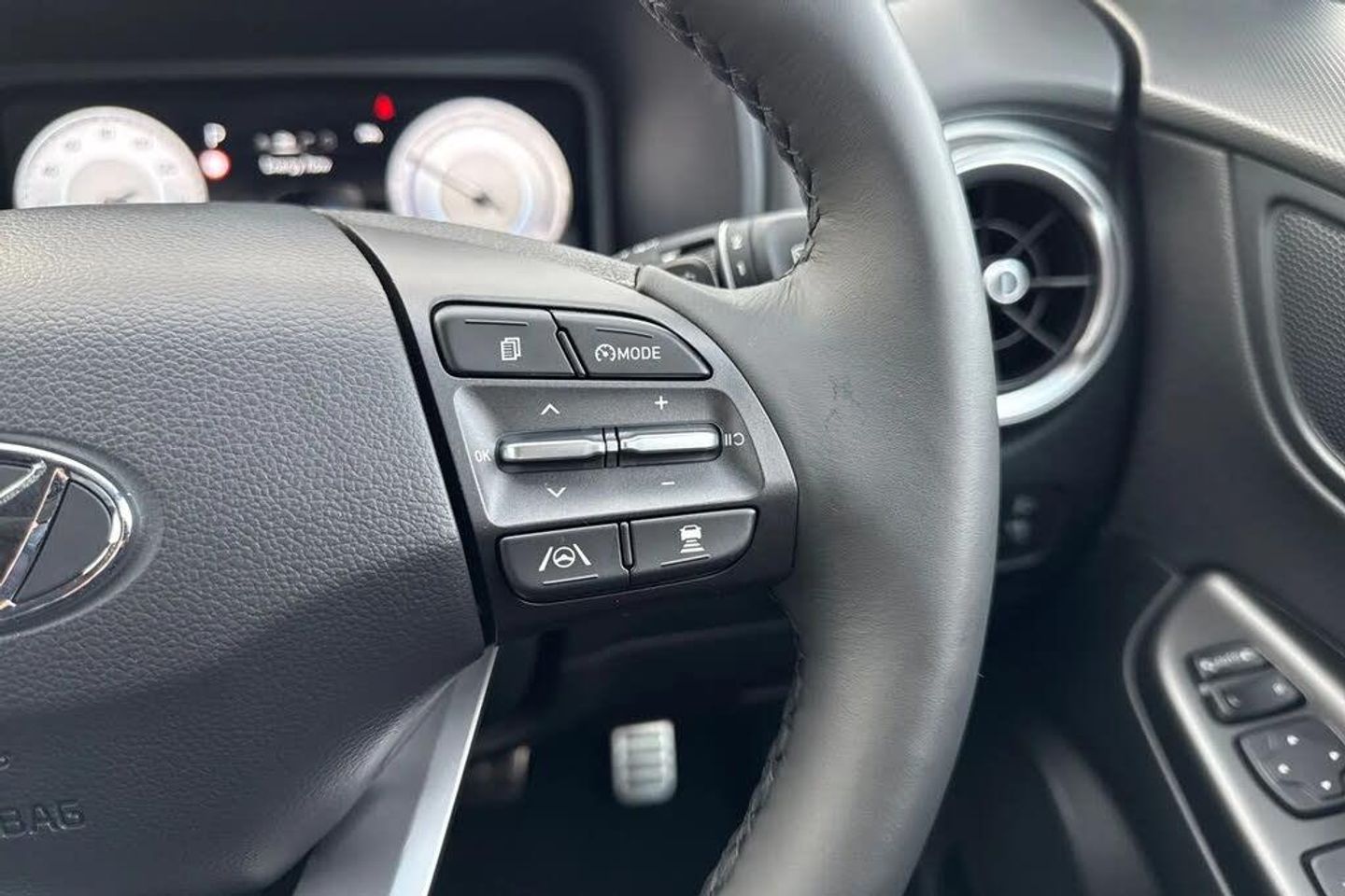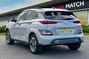 Sat Nav, Alloys, Automatic Headlights, Bluetooth, AC/Climate, Cruise Control, Panoramic / Sunroof, Advanced Safety, Collision Detection, Headup Display, Heated Seats, Heated Steering Wheel, Ambient Lighting, Parking Sensor, Apple CarPlay/Android Auto, Keyless Entry, Aux In;Available now from Motor Match Chester, with only one owner from new and just 290 miles on the clock. This Hyundai Kona Ultimate boasts a 64kWh battery, providing up to 300-miles* all-electric range, giving you plenty of power for commuting. Charging is quick and easy thanks to the rapid charging capability, with a 100kW charger offering a 10-80% charge in as little as 53 minutes! The Kona comes finished in the stunning Cyber Grey gloss paint, and boasts 17in diamond-cut alloy wheels and rear privacy glass for a sleek look. Inside, you'll find sublime full-leather upholstery, with the front seats offering electric adjustment that allows you to easily find your preferred seating position. The front seats are heated and ventilated, and the outer rear seats are heated too! Dual-zone climate control is also provided, and the interior is flooded with light thanks to the opening panoramic sunroof. The Hyundai boasts an excellent media system, offering access to DAB radio, Bluetooth interface and USB connectivity, so you have plenty of choice when it comes to music, with anything you play sounding incredible thanks to the Krell sound system! The car also benefits from the reliable satellite navigation system, and you have the ability to connect smartphones to use Apple CarPlay and Android Auto! The Kona also offers an incredible list of safety features, including front/rear parking sensors and a rear view camera to make manoeuvres much easier. Blind spot monitoring, adaptive crui...