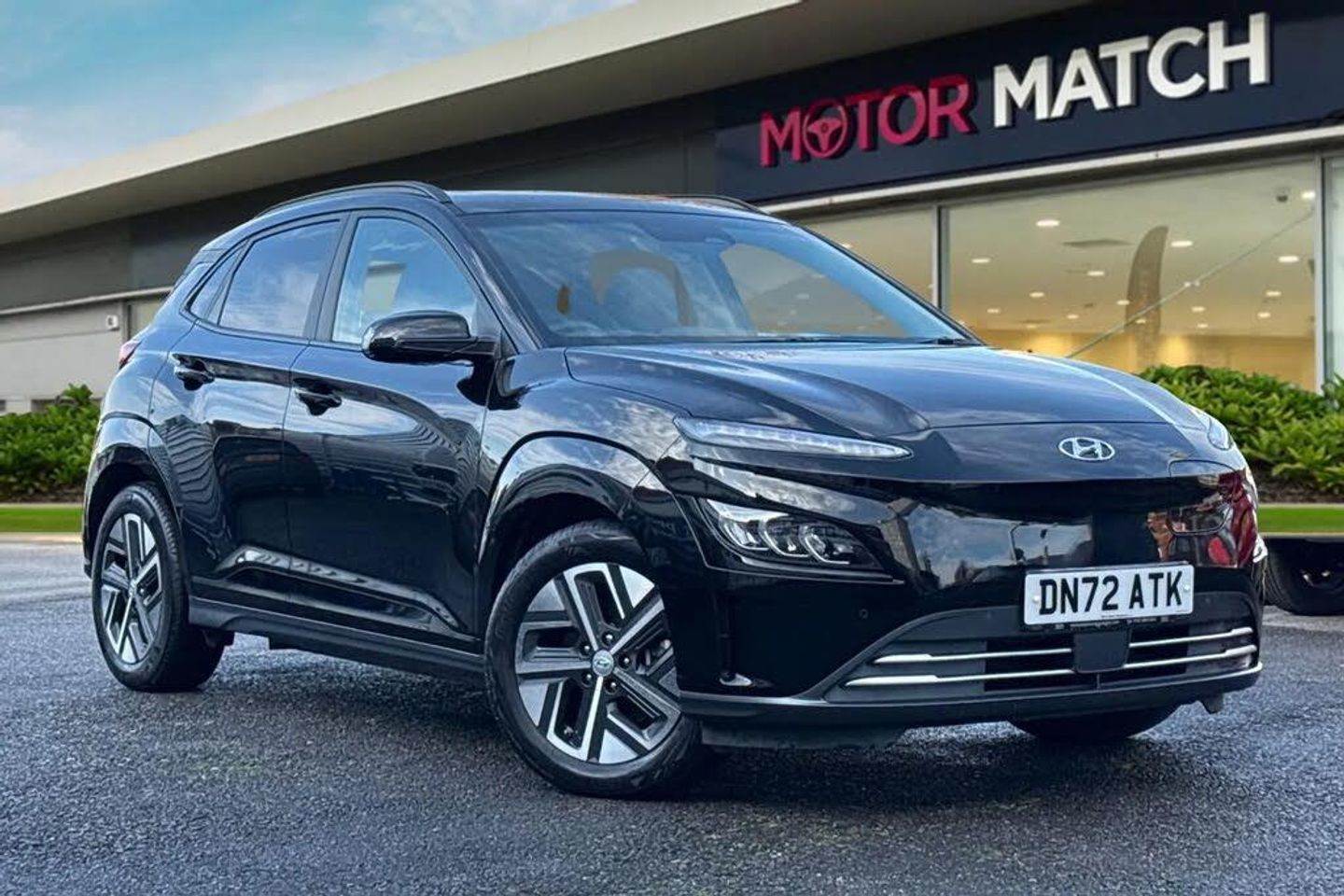 Sat Nav, Alloys, Automatic Headlights, Bluetooth, AC/Climate, Cruise Control, Panoramic / Sunroof, Advanced Safety, Collision Detection, Headup Display, Heated Seats, Heated Steering Wheel, Ambient Lighting, Parking Sensor, Apple CarPlay/Android Auto, Keyless Entry, Aux In;Experience the perfect blend of efficiency, technology, and comfort with this stunning Hyundai KONA 64kWh Ultimate Auto. Presented in sleek black, this fully electric SUV offers an impressive driving range, smooth automatic performance, and a host of premium features designed to elevate every journey. The 64kWh battery delivers strong electric performance with instant torque and a quiet, refined ride. Its 10.5kW onboard charger ensures convenient and efficient charging whether at home or on the go. Striking LED daytime running headlights and stylish 17-inch alloy wheels give the KONA a bold, modern appearance, while the panoramic sunroof adds a sense of space and light to the cabin. Inside, you?ll find a thoughtfully designed interior featuring heated front seats, air conditioning, and a wealth of tech for comfort and convenience. Stay seamlessly connected with Bluetooth connectivity, a premium infotainment system, and satellite navigation to guide your every trip. For added safety and ease, the KONA Ultimate is equipped with rear parking sensors, a reversing camera, and cruise control for relaxed motorway driving. Combining practicality, style, and zero-emission performance, this Hyundai KONA Ultimate is the ideal choice for those who want a capable, eco-friendly SUV without compromise. Refined, reliable, and ready for the road?this is electric driving at its best. This vehicle is part of the Motor Match Promise that includes a minimum 30 days or 1,000 mile warranty which...
