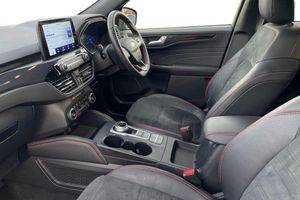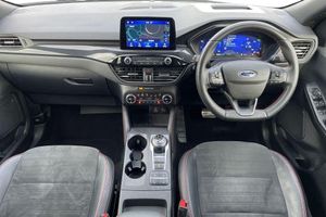 Inflation Kit, 10-Way Power Adjustable Drivers Seat, 12V Power Point in Floor Console, 12v Power Point in Cargo Area, 12v Socket - Voltage Regulator, 19in Alloy Wheels - 5x2 Spoke - High Gloss - Machined, 2nd Row Sliding Seats, 8-Way Manual Passenger Seat including Lumbar Support and Height Adjust, ABS - Anti-Lock Braking System with Enhanced Electronic Stability Control - ESC with Traction Control - Emergency Brake Assist - EBA - Hill Start Assist - Trailer Sway Control, Air Conditioning - Electronic Automatic Temperature Control - EATC, Airbag - Driver and Front Passenger Side, Airbag - Front Passenger Deactivation Switch, Airbags - Driver and Front Passenger, Airbags - Front and Rear Side Curtain, Aluminium - Finish Front Scuff Plates with ST-Line Script, Aluminium Foot Pedals - ST-Line Design, Ambient Lighting, Auto Dimming Rear View Mirror, Auto Wipers, Automatic Door Relocking, Automatic Headlights with Auto High-Low Beam, Black Roof Rails, Centre Console with Electronic Parking Brake, Cruise Control with Speed Limiter, Driver and Passengers Sun Visor with Illumination, Dual Exhaust Tailpipes with Unique Brushed Stainless Steel Finish, EPAS - Electric Power Assisted Steering, Electric Childproof Locks on Rear Doors, Electric Parking Brake with Auto Hold, Electrical Charging Point in Second Row, Engine Immobiliser - SecuriLock, Exterior Door Handles - Body Coloured, Ford Easy Fuel System, Ford Keyfree System - Keyless Entry with Ford Power Starter Button, Ford SYNC3 DAB Navigation System, Front Lower Grille - Ebony Black Mesh, Front Seats - 2-Way Manual Height Adjust Passive Head Restraints, Front Seats - Drivers and Passengers Seatback Map Pockets, Front Upper Grille - Carbon Black Honeycombe Mesh and High-Gloss Black Surround, Front Windows - Laminated Glass, Front and Rear Bumper - Sporty Body Colour with Rear Ebony High-Gloss Insert, Front and Rear Floor Mats with Red Stitching, Front and Rear Parking Sensors, Full Digital 12.3in Instrument Cluster, Full LED Headlamps, Gearshift - Automatic - Electronic Rotary Gearshift Dial, Glovebox Lights, Handsfree Power Tailgate, Headlights - Automatic Follow Me Home Lighting, Headlights - Levelling System - Manual, Headlights - Unique Bending, Headliner - Sports Dark, Heated Driver and Passenger Seats, Heated Rear Seats, Heated Steering Wheel, Heated and Power Folding Door Mirrors with Puddle Lights, High-Mounted Brake Light, Kuga Badge, LED Daytime Running Lights, LED Fog Lights - Front, Lane Keeping Aid with Lane Departure Warning, Large Rear Spoiler, Load Compartment - Lights, Load Compartment - Tie Down Hooks, Load Compartment Carpet, Locking Wheel Nuts, Lower Bodyside Moulding - Body Colour, Lower Door Frame Beltline - Black, Mini Overhead Console with Sunglasses Holder Bin, MyKey, Power Door Deadlocks - Double Locking, Power Door Locks, Power Opening Panoramic Roof, Pre-Collision Assist with Autonomous Emergency Braking, Quickclear Heated Windscreen, Rear Duct on B-Pillar, Rear Lights - LED, Rear Privacy Glass, Rear Seat - 60-40 Split Folding Seats, Rear Seat Centre Head Restraint, Rear Seats - 2-Way Head Restraint Up-Down, Rear Seats - Folding Centre Armrest with Integrated Cup Holder, Rear Seats - Sliding Seat Adjust Tracks - Fore-Aft, Rear View Camera, Red Brake Calipers, Remote Tailgate Release, Removable Package Tray, Rocker Panel Mouldings - Body Colour - ST-Line Design, ST-Line Badge on Left and Right Side Wings, ST-Line Bodystyling Kit, ST-Line Front and Rear Bumper Moulding - Body Colour, Seat Belt - Drivers - Front Passenger and Rear Seat Belt Reminder Alert, Seat Belts - Front 3-Point Seatbelts with Load Limiter, Seat Belts - Front Height Adjustable, Seat Belts - Rear Retractable Rear Belt - 3-Point All Positions, Seats - ISOFIX Mounting Provision for Child Seats - Outer Seats Only, Selectable Drive Modes, Single Rear Fog Light, Sports Seats, Steering Column - Locking Electric, Steering Column - Rake and Reach Adjustment, Steering Wheel - ST-Line Sports-Style Perforated Sensico-Trimmed with Red Stitching, Suspension - Sports, Tailgate Handle - Body Colour, Tether Anchorage - Two Rear Seat Top Tether Anchorage Restraints, Thatcham Category 1 Perimeter and Volume Sensing Alarm, Tow Hooks - Front and Rear, Trip Computer, Tyre Inflation Kit, Tyre Pressure Monitoring System, Upper Door Frame Beltline - Black, Windows - Power Front and Rear with Global Closing, Winter Pack, Wiper - Intermittent Rear Window Wiper, Wrong Way Alert, eCall