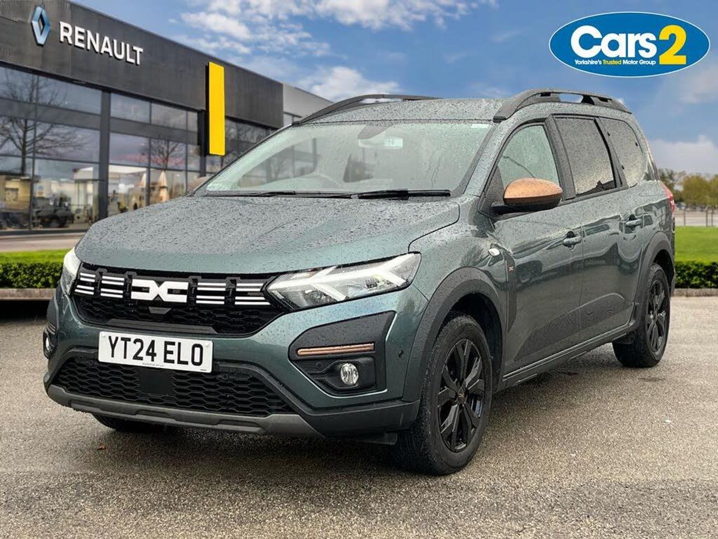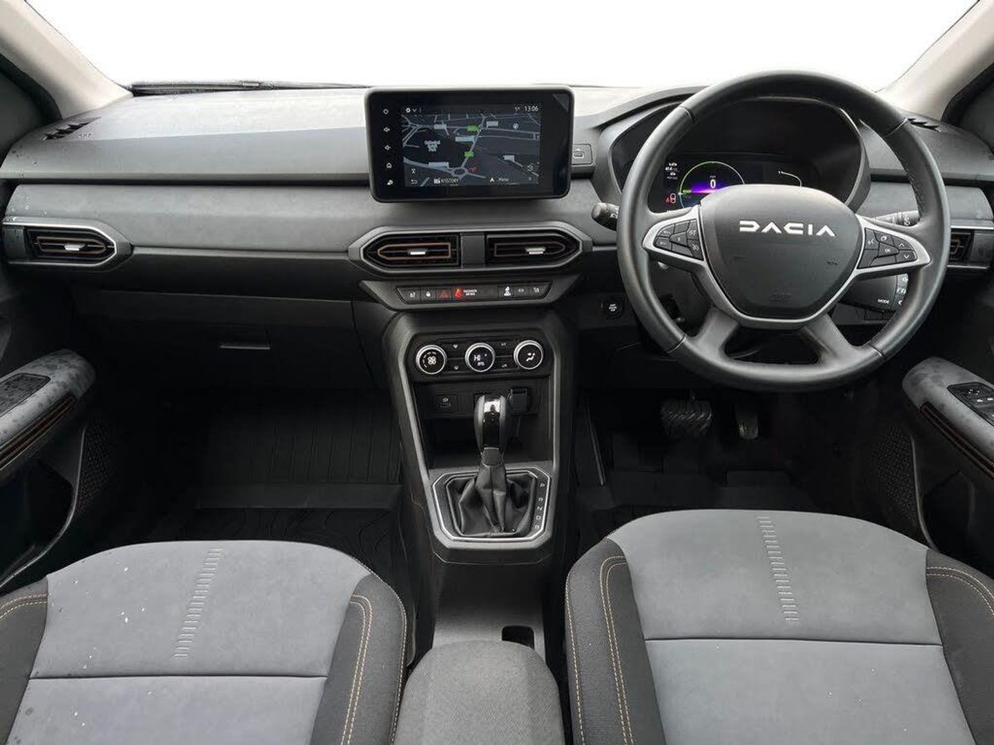 3.5" TFT instrument panel with on-board computer, 7" Color dedicated cluster, Blind spot warning, Check control system, Cruise control and speed limiter, e-Call (emergency call), Eco mode, Electric power assisted steering, Extended grip switch, Exterior temperature display, Front parking sensors, One touch indicators, Rear parking sensors, Rev counter, Reversing camera, Service interval indicator, Stop/start system, Voice control for telephone and radio, Exhaust particle filter, 8" MediaNav with DAB Radio, WIFI Smartphone replication, Bluetooth, 6 speakers with Apple Carplay/Android Auto and Extra map, USB connection for data transfer and charging, USB socket, 3 speed windscreen wipers, Auto lighting, Automatic wipers, Black longitudinal roof bars, Body coloured door handles, Body coloured front and rear bumpers, Chrome radiator grille, Copper brown "Stepway" marking on roof bar, Copper brown deco part on fog lamp area, Copper brown door mirrors, Dark glass, Door sills in topographic pattern, Drivers one touch electric windows, Electric headlight adjustment, Electrically adjustable door mirrors, Front fog lights, Front LED Indicator lights, Headlights with LED low beam illumination, Heated door mirrors, Heated rear window, High level third rear brake light, Initial anti-corrosion treatment, Lateral sticker with topographic pattern, LED automatic daytime running lights, Modular roof bars, Rear electric windows, Rear side wing doors, Rear wash/wipe, Shiny black shark antenna, Snorkel sticker with topographic pattern, Towbar preparation, Transversal emblem and white highlights on front air vent grid, Y-shaped LED lighting signature, 1/3 to 2/3 split folding 2nd row seats, 12V socket in front, 12V socket in rear of vehicle, 2 independently folding and removable 3rd row seats, 2x Rear coat hooks, 3 height adjustable rear headrests, 3 load hooks, 3 seat bench in 2nd row, 4 lashing rings, Automatic air conditioning, Boot light, Copper Brown animation on air vents, Copper brown doors deco parts, Driver and passenger vanity mirror with cover, Elastic straps, Fabric upholstery, Fixed smartphone holder on dashboard, Front and rear rubber mats with topographic pattern, Glovebox, Heated front seats, Height adjustable drivers seat with armrest, Height adjustable front headrests, Height and depth manually adjustable steering wheel, High central armrest with console storage, Isofix points for child seats in both outer rear seats, Lidded storage bin within the centre console, Micro-cloud grey fabric on dashboard, Multifunction steering wheel, Rear ceiling light, Rear door pockets, Satin chrome air vents, Satin chrome interior door handles, Single front passenger seat, Sliding tray tables, Soft feel steering wheel, Steering wheel controls, Timed interior light, Under floor storage in luggage area, 3x3 point rear seatbelts, Anti-lock braking system (ABS), Automatic Emergency Braking System (AEBS), Child locks on rear doors, Door open visual and audible warning, Driver and front passenger airbags, Driver and passenger seatbelt not fastened warning, Driver and passenger side airbags, Electronic parking brake, Electronic Stability Control (ESC), Electronic Stability Programme (ESP), Emergency Brake Assist (EBA), Front passenger airbag deactivation, Front seatbelt pretensioners, Height adjustable front seatbelts, Hill Start Assist (HSA), Side airbags (thorax and curtains - front/rear), Tyre pressure monitor, Alarm, Automatic central locking, Engine immobiliser, Keyless entry, Remote central locking, Decopart on instrument panel and door with textile, 16" Black alloy wheels with copper brown dacia logo, Tyre inflation kit