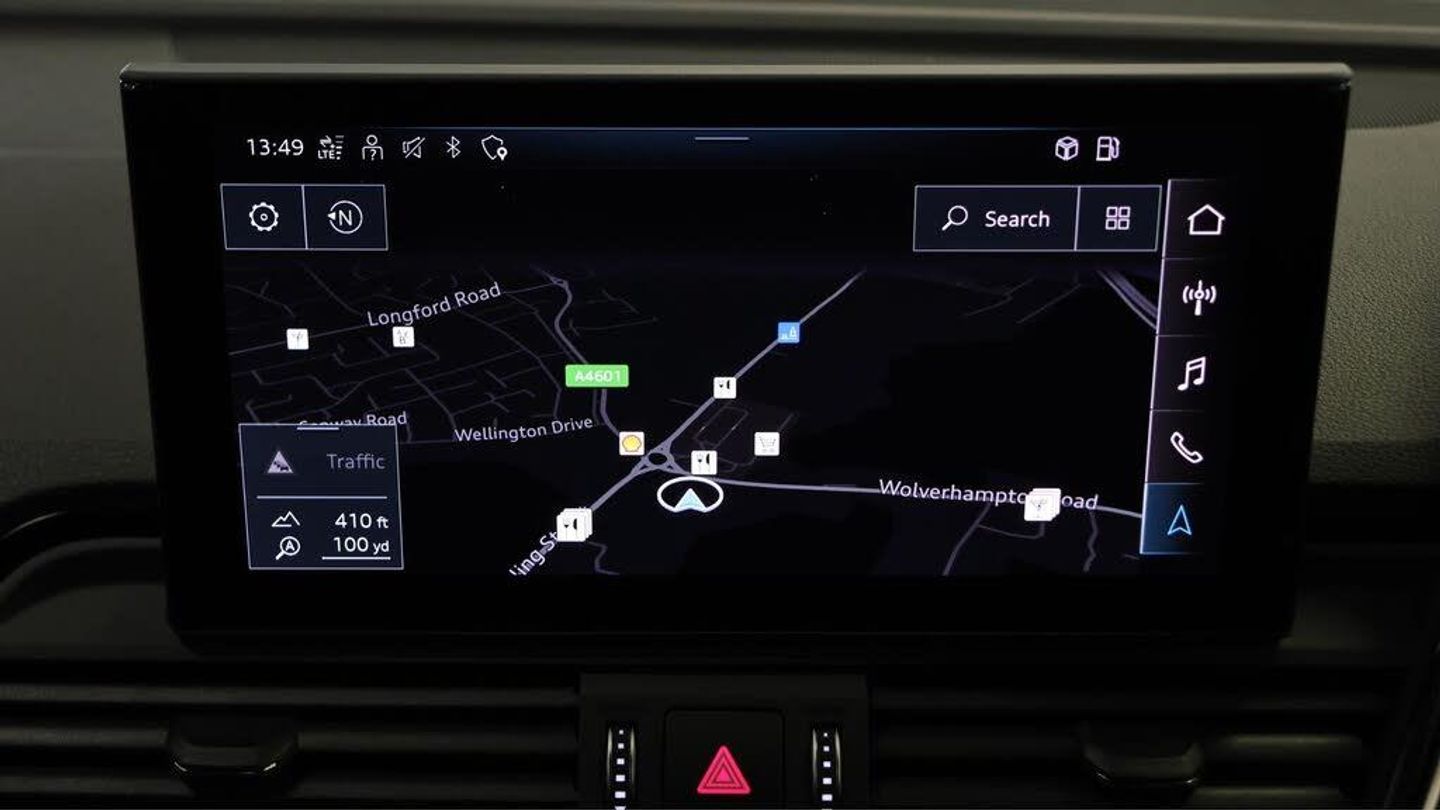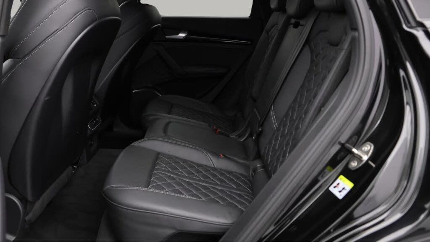 Audi Phone Box with wireless charging, Black Sport seats with Fine Nappa leather, Fine Nappa leather with S embossed logo, Flat-bottomed 3-spoke multi-function steering wheel, Mythos black, metallic, Mythos Black, metallic, Rear bench seat plus