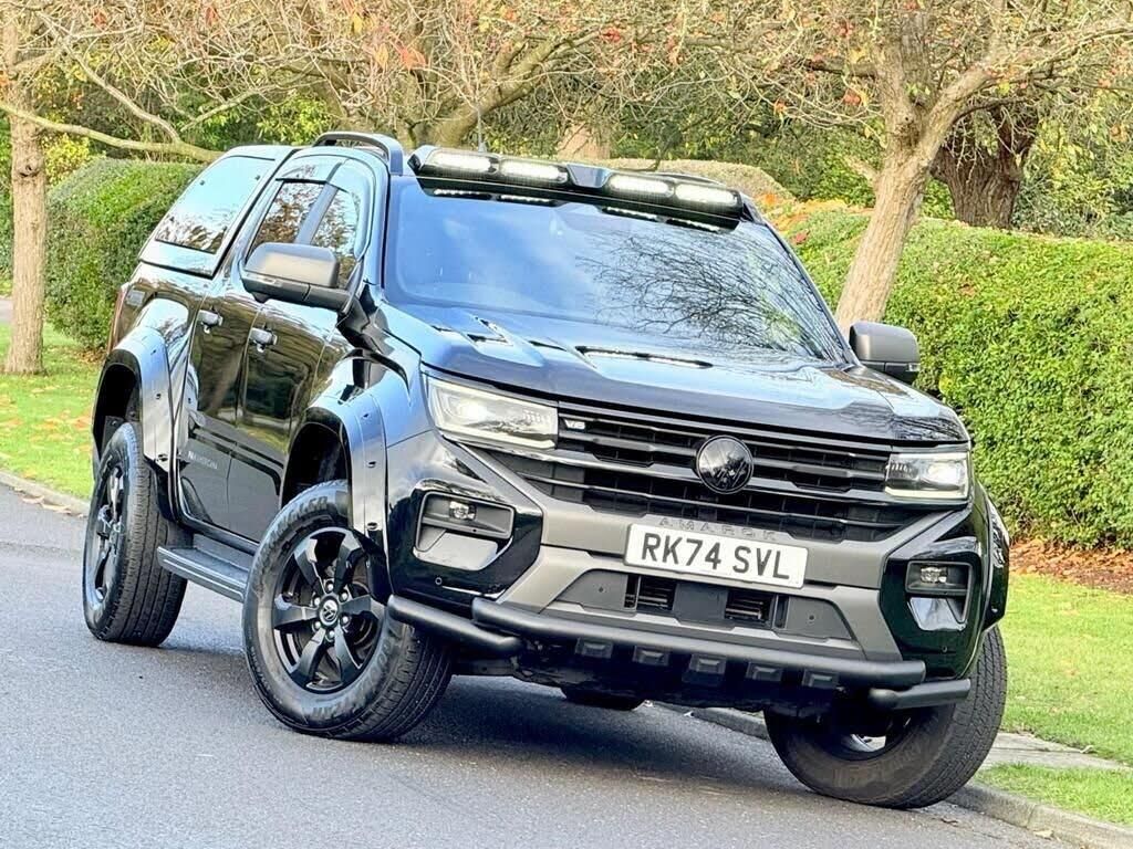This 2024 Volkswagen Amarok PanAmericana boasts a full service history and has had only one owner from new, ensuring excellent provenance. This robust 3.0 TDI V6 PanAmericana Auto 4Motion Euro 6 (s/s) 4dr model features a powerful 237 bhp 3.0L diesel engine and a capable four wheel drive system. It comes equipped with a Towing Pack, including front and rear parking sensors and a towbar, making it ideal for hauling loads up to 3500 kg. The Area View 360 Camera provides a comprehensive view around the vehicle, adaptive cruise control, pro sat nav, apple car play, double canopy, android auto further aided by parking assistance. Inside, you'll find dual zone climate control for comfort and a premium Harman Kardon sound system for an enhanced audio experience. The Amarok PanAmericana stands out with its advanced lighting technology, featuring Dynamic Light Assist for the IQ.LIGHT LED Matrix headlamps, which intelligently manage high beams for improved visibility. These features, combined with its Euro 6 emission classification and the comprehensive specification, indicate a vehicle that offers a superior driving and ownership experience compared to other similar models. The clear vehicle history check further adds to the peace of mind for any potential buyer.