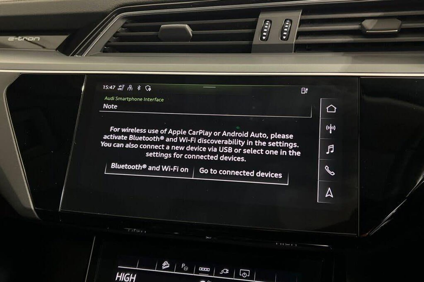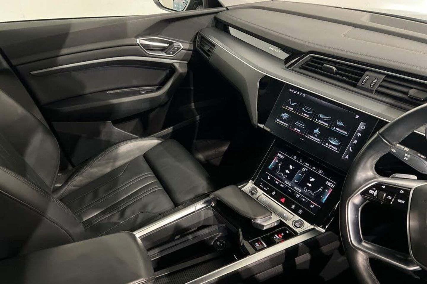 11 kW Onboard Charger, 2 USB C Ports with Charging Functionity in the Rear, 2-Zone Automatic Air Conditioning, 20in Alloy Wheels - 9.0J 5-Arm Dynamic Design Contrasting Grey, 4-Way Lumbar Support for Front Seats, ABS - Anti-Lock Braking System, AC and DC Charging Access Point on Drivers Side and Second AC Charging Access Point on Passenger Side, Active Vehicle Alerting System - AVAS, Adaptive Air Suspension, Airbags - Driver, AMI - Audi Music Interface - Front, Anti-Theft Alarm, Anti-Theft Wheel Bolts and Wheel Loosening Warning, Audi Connect, Audi Connect Safety and Service - e-call, Audi Drive Select, Audi Pre-Sense Front and Basic, Audi Smartphone Interface Includes Wireless Functionality, Audi Sound System, Audi Virtual Cockpit, Auto Dimming and Frameless Rear View Mirror, Bluetooth Interface, Body Coloured Door Mirrors, Brilliant Black, Bumpers - Contrasting, Cloth Headlining in Lunar Silver, Comfort Centre Armrest - Front, Compact e-tron Charging System, Cruise Control with Speed Limiter, DAB Digital Radio, Door Mirrors - Electrically Adjustable - Heated - Folding - Automatically Dimming with Memory Function with Kerb View Function for Passenger Side, Door Sills with Aluminium Inlays, Electric Windows - Front and Rear, Electrically Adjustable Front Seats including Memory Function for Drivers Seat, First Aid Kit and Warning Triangle, Four-Spoke Multi-Function Leather Steering Wheel with Paddles, Front and Rear Floor Mats, Front Sports Seats, Gloss Styling Pack, Heated Front Seats, Household Plug Type G - GB, Industry Plug CEE 32 A-230 V, Inlays in Graphite Grey Paint Finish, ISOFIX Child Seat Mounting for Front Passenger Seat with Front Passenger Airbag Deactivation, ISOFIX Child Seat Mounting for Outer Rear Seats, Keyless Go, Lane Departure Warning, LED Headlights with Function-On-Demand Preparation, LED Interior Light Package, LED Rear Lights, Luggage Compartment Cover, Luggage Compartment Floor, Manual Steering Column Adjustment, MMI Navigation Plus with MMI Touch - Twin Touch Screens with Haptic Feedback, Mode 3 Type 2-AC Charging Cable 22kW, Operating Buttons in Black - Glass Look with Haptic Feedback, Parking System Plus with 360 Degree Sensors and Function-On-Demand Preparation, Power Operated Tailgate, Progressive Steering, Rear View Camera, Removable Net Partition, Side Airbags - Front and Head Airbag System, Sun Visors with Illuminated Vanity Mirrors, Tool Kit, Tyre Mobility System, Tyre Pressure Warning Light, Valcona Leather - Sport Seats - Black, Vehicle Inlet Combo 2 - EU CCS, Windscreen with Acoustic Glazing