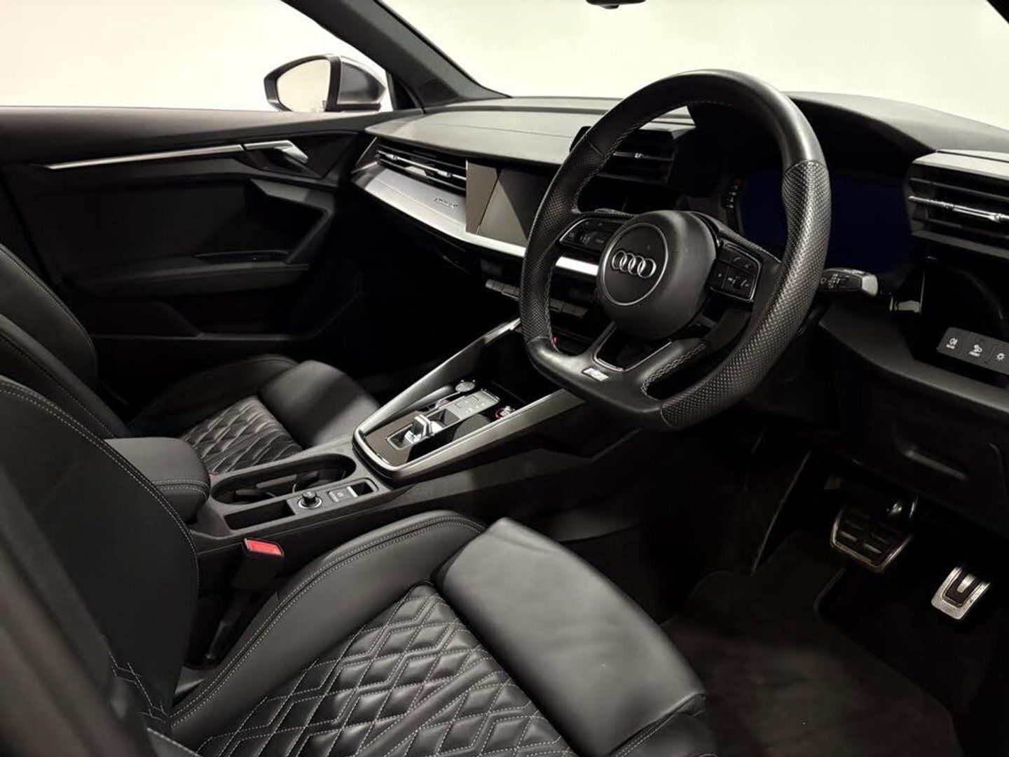 12v Socket and Storage Compartment in Front Centre Console, 18in Alloy Wheels - 10-Spoke Star Style, 2 USB-C Ports with Charge and Data Functions, 6 Passive Loudspeakers, Airbags - Driver and Front Passenger with Passenger Airbag Deactivation, Aluminium Interior Elements, Aluminium Look Door Mirror Housings, Aluminium Window Trims, Anti Theft Locking Wheel Bolts, Anti-Theft Alarm, Audi Beam, Audi Connect Emergency Call and Service, Audi Connect Navigation and Infotainment Services Plus (3 Year Subscription From New), Audi Drive Select, Audi Pre-Sense Front with Pedestrian and Cyclist Recognition, Audi Smartphone Interface, Audi Virtual Cockpit, Auto Dimming and Frameless Rear View Mirror, Automatic Start-Stop System with Recuperation, Bluetooth Interface, Brake Calipers Painted in Glossy Black, Child Locks - Manual, Cloth Headlining in Black, Collision Avoidance Assistant, Cruise Control, DAB Digital Radio, Dual-Branch Oval Twin Tailpipes in Chrome-Plated Finish, Dual-Zone Electronic Climate Control, ESC - Electronic Stabilisation Control inc ABS - ASR and EDL, Electric Windows - Front, Electronically Operated Child Locks, Exterior Mirrors - Electrically Adjustable - Heated and Folding - Automatically Dimming on Both Sides with Built-In LED Side Indicators - Including Automatic Kerb-Side Function for the Passenger-Side, First Aid Kit and Warning Triangle and 2 Safety Vests, Front Side Airbags with Head Airbags and Interaction Airbag, Front and Rear Centre Armrest in Leather, Front and Rear Floor Mats, Headlights Washers, Heated Front Seats, Hill Hold Assist, I-Size and Top Tether Child Seat Mounting for the Outer Rear Seats, Illuminated Door Sill Trims with Aluminium Inserts and S Logo, Illuminated Vanity Mirrors, Inlays - Dark Spectrum Aluminium, LED Headlights with LED Rear Lights and Dynamic Rear Indicators, Lane Departure Warning, Light and Rain Sensor, Luggage Compartment Floor Covering, MMI Navigation Plus with High Resolution 10.1in Touchscreen Colour Display, Manual Boot Compartment Lid, Pedals in Stainless Steel and Footrest in Black, Privacy Glass, Privacy Glass - Dark-Tinted Rear Window - Rear Door and Side Window., Progressive Steering, Rear Parking Sensors, Rear Side Air Outlets - Grained Matt Black, Remote Central Locking, S Sport Suspension, S3 Design Body Styling, Seat Belt Monitoring, Split-Folding Rear Seat Bench can be Split 40: 20: 40 or Fully, with Centre Armrest and Cup Holders, Steering Wheel - Sports Contour Leather-Wrapped with Multi-Function Plus 3-Spoke - Shift Paddles Flat-bottomed, Storage Package, Tool Kit, Tyre Pressure Loss Indicator, Tyre Repair Kit, Voice Control System with Natural Language Interaction, Windscreen with Acoustic Glazing