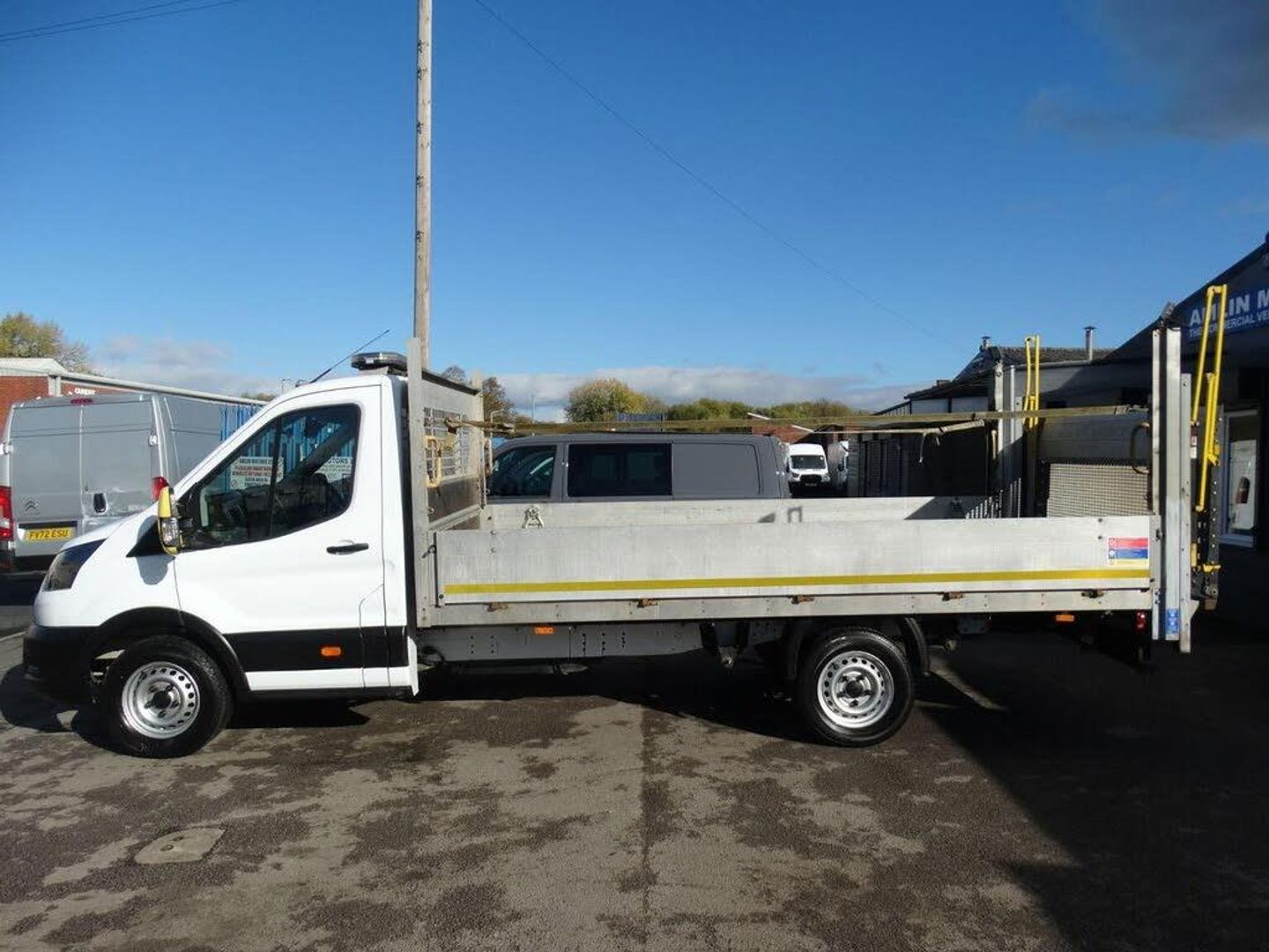DOZENS MORE SIMILAR VEHICLES TO SEE AT WWW.AMLINMOTORSLTD.CO.UK - This is a superb one owner Ford Transit L4 XLWB Chassis Alloy Dropside presented in excellent condition throughout. This vehicle comes with full documented service history from new. A new MOT and service has been undertaken for sale along with an O/S/R Shock Absorber and Front Brake Pads. Great Specification includes 14FT Lightweight Alloy Dropside Body with personnel guard straps, 500KG Tail Lift, Air Conditioning, Colour Rear Reversing Camera, Remote Central Locking, ABS, PAS, MP3/USB Player, Bluetooth Telephone, Bluetooth Audio Streaming, Electric Windows, Multi Function Steering Wheel, On Board Computer, ASR/Traction Control, Hill Hold Assist, Hazard Warning Beacon, Cab Mounted Work Lights. EURO6 ULEZ/LEZ/CAZ COMPLIANT. 1st to see will buy this superb vehicle. Over 120 vehicles in stock to drive away. ASK ABOUT OUR PROMPT NATIONWIDE DELIVERY SERVICE. HPI CLEAR FINANCE/WARRANTY AVAILABLE,WARRANTED MILEAGE,BUY WITH CONFIDENCE FROM FCA APPROVED DEALERS.