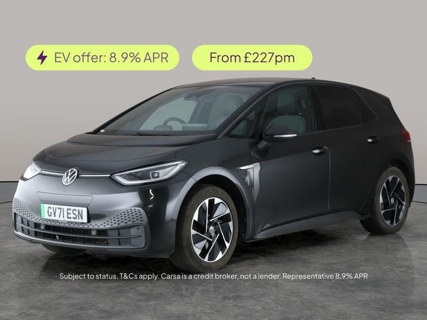 Experience the future with this grey Volkswagen ID.3 Pro Performance. Enjoy peace of mind on every journey with features like Adaptive Cruise Control, Blind Spot Assist, and both Front and Rear Parking Sensors. The electric drive offers smooth, quiet journeys, while Bluetooth keeps you connected. With the powerful Assistance and Comfort Packs as well as included charging leads, this ID.3 makes every drive comfortable and effortless. Step into smart, efficient motoring today. 1 service recorded, last serviced on 17/10/2025 at 32,367 miles. MOT to 10/11/2026. Visit our website for service history, online valuation, full vehicle specification plus multiple images. This vehicle is VAT qualifying. Any feature/option specified here is from 3rd party data. We cannot guarantee the accuracy of any specification supplied by a 3rd party. We recommend that you physically check the specification of the vehicle on site prior to purchase. This information does not form part of the buying contract. Terms & Conditions apply. We have over 2,000 cars available from our 10 national branches, check our website to see all our stock. Our Trustpilot rating is 4.4/5 with over 9,000 reviews.