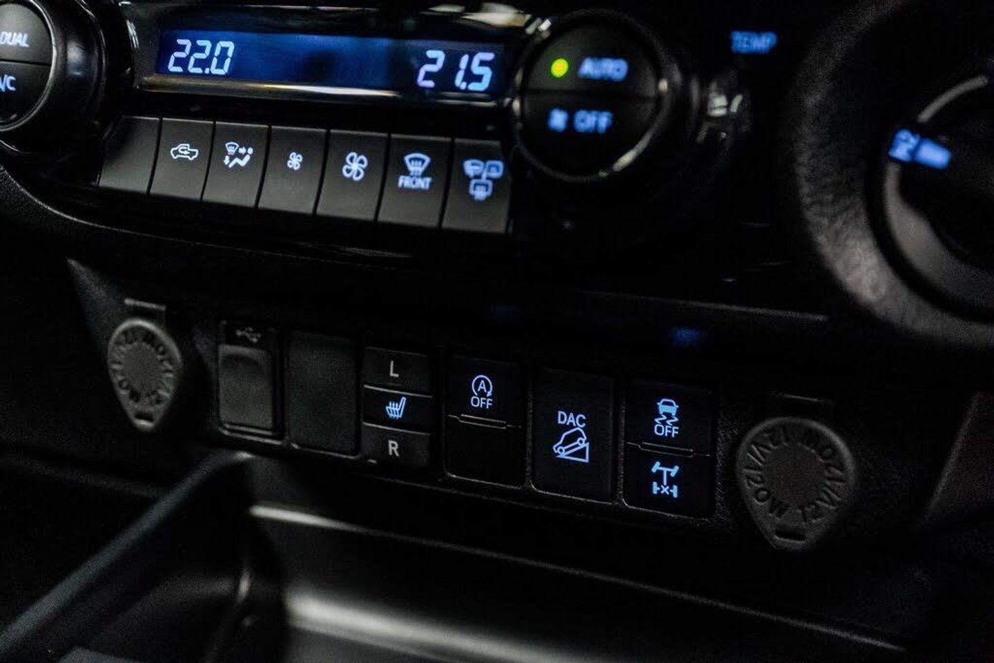 17in Alloy Wheels - Bi-Tone Black Machined Face - GR Sport, 60-40 Split Tip Up Rear Bench, Active Traction Control - ATC, All-Terrain Tyres, Ambient Door Lighting, Anti Lock Braking System - ABS with Electronic Brake-Force Distribution - EBD, Auto Headlights, Automatic Headlight Levelling, BA - Brake Assist, Black G-Mesh Grille, Bluetooth Connectivity, Bumpers - Body Coloured, Cooler in Upper Glovebox, DAC - Downhill Assist Control, Dark Grey Rear Bumper, Digital Audio Broadcast - DAB, Dual-Zone Automatic Air Conditioning, Dynamic Guide Lines On Rear - View Camera Display, Electrochromatic Rear-View Mirror, Emergency Brake-Light Signal - EBS - Hazard Type, Floor Mats - Textile, Follow Me Home Headlights, Front 12V Power Outlet x2, Front Mudguards, Front Passenger Airbag Detector, Front Passenger Airbag On-Off Switch, Front Seat Belt Reminder, Front and Rear Monotube Shock Absorbers, Front and Rear Parking Sensors, Front and Rear Power Windows, Full Spare Alloy Wheel, HAC - Hill Start Assist Control, Headlight Cut-Off Reminder, Headlights - LED, Height Adjustable Driver Seat, Immobiliser, Inner Load Hooks on Cargo Deck, Intelligent Adaptive Cruise Control, JBL Premium Sound System with 9 Speakers, LED Daytime Running Lights, LED Front Fog Lights, LED Rear Lights, Lane Departure Alert, Leather Steering Wheel and Gear Shift, Lockable Tailgate, Panoramic View Monitor, Power Steering, Pre-Collision System with Pedestrian Detection, Privacy Glass - Rear, Rear Fog Light, Rear Mudguards, Rear Passenger Footwell Heating, Rear View Camera, Red Coil Springs - Front, Retractable - Power Adjustable and Heated Door Mirrors, Road Sign Assist, Seats - Drivers Power Adjustment, Seats - Heated Front, Seats - Heated Outer Rear, Shade Band on Windshield, Side Steps - Black, Smart Entry and Smart Start System, Smartphone Integration including Apple Car Play and Android Auto, Sports Bar - Black, Supplemental Restraint System - SRS - Airbags - 7 Airbags, TPMS - Tyre Pressure Monitoring System, Toyota Safety Sense 2, Toyota Touch 2 Multimedia, Toyota Touch 2 with Go Navigation, Trailer Sway Control - TSC, USB Connector, Underbody Protection Cover, VSC - Vehicle Stability Control, Windscreen Wiper De-Icer