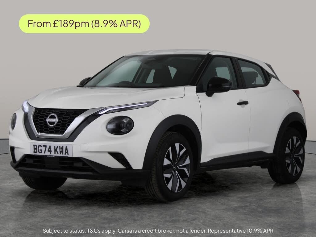 Step into the stylish white Nissan Juke SUV and enjoy advanced features like Apple CarPlay, a reversing camera, integrated Wifi, and Bluetooth connectivity. Stay safe with Intelligent Lane Intervention, Lane Departure Warning, Traffic Sign Recognition, and cruise control, making every journey more relaxed and secure. This Juke pairs sporty looks with clever technology, perfect for those seeking excitement and peace of mind on the road. MOT to 12/12/2027. Visit our website for service history, online valuation, full vehicle specification plus multiple images. This vehicle is VAT qualifying. Any feature/option specified here is from 3rd party data. We cannot guarantee the accuracy of any specification supplied by a 3rd party. We recommend that you physically check the specification of the vehicle on site prior to purchase. This information does not form part of the buying contract. Terms & Conditions apply. We have over 2,000 cars available from our 10 national branches, check our website to see all our stock. Our Trustpilot rating is 4.4/5 with over 9,000 reviews.