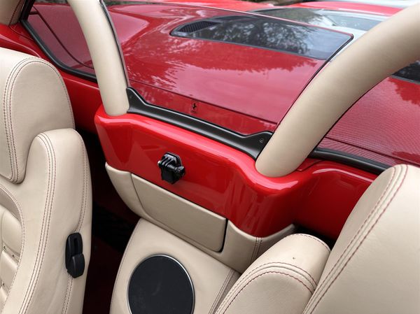 The car has the Carbon fibre driving zone, carbon engine panels and diffuser. Upgraded music system, Red brake callipers, Electric seats, Ferrari shields, Red seat piping, Crema leather roll bar, Daytona seats, upgraded sports manifolds (Still have originals) and Front end PPF etc