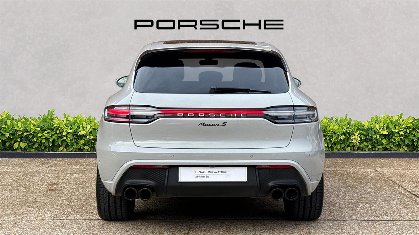 20" Macan S Wheels In Vesuvius Grey,Panoramic Glass Roof System,Sports Exhaust System Inc Sports Tailpipes In Black,LED Headlights Inc PDLS+,Heated Windscreen,Comfort Seats 14 Way Inc Memory,Lane Change Assist,Lane keeping Assist,Self Steering Park Assist,Power Steering Plus,Front & Rear Heated Seats,Tinted LED Taillights Inc Light Strip,Auto Dimming Mirrors,Privacy Glass,Smartphone Compartment With Wireless Charging,Side Window Trims In Black High Gloss,Sideblades Painted In Black High Gloss,Model Designation Painted Black High Gloss,Painted Exterior Trim Package Inc Sport Design Sideskirts,75 Litre Fuel Tank,24 Months Porsche Warranty & Assistance