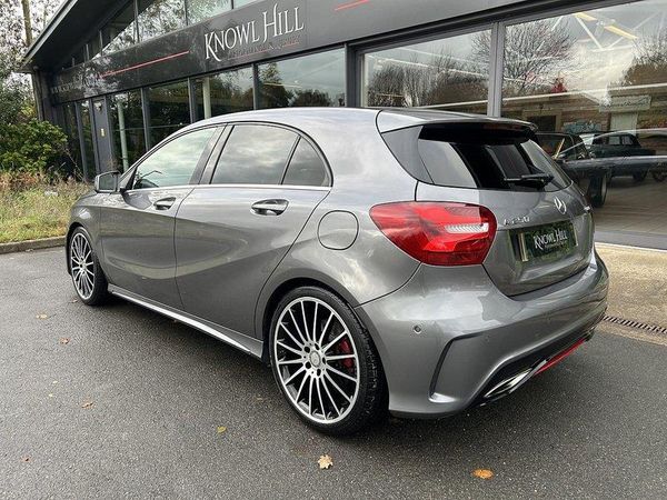 We are proud to offer this lovely Mercedes-Benz A250 AMG 4Matic finished in Mountain Grey Metallic with Black Artico/Alcantara upholstery which is complemented with a red contrast stitch. This car has had 2 previous owners from new and has been very well maintained coming complete with a full service history. It boasts a fantastic specification which includes: Premium Pack, Harman/Kardon Sound System, Panoramic Glass Sunroof, Heated Front Seats, 19 inch AMG Alloy Wheels (which has been recently refurbished) and Keyless Entry and Start to name a few (please read full specification below). For any further details or to arrange a viewing on this lovely little car, please call a member of our sales team on 01628 825110. At Knowl Hill Performance & Luxury your experience with us is key, we offer full main dealer facilities from service, MOT and warranties to detailing, tyre changes and everything in-between. All our cars come fully detailed and with a clear HPI certificateAbout the seller