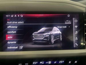 MMI Navigation Plus with High Resolution 11.6in Touchscreen Colour Display, Compact e-tron Charging System, 110kW DC Charging Capability, 7.2 kW Onboard Charger, Mode 3 Type 2-AC Charging Cable 22kW, Household Plug Type G - GB, Industry Plug CEE 32 A-230 V Long and Straight, AC and DC Charging access Point on the Rear Right, 19in Alloy Wheels - 5-W-Spoke - Aero - Graphite Grey - Gloss Turned Finish, Audi Drive Select, Audi Virtual Cockpit - 10.25in Display, Rear Parking Sensors, Keyless Go, LED Headlights with LED Daytime Running Lights, Bluetooth Interface, Audi Smartphone Interface, Audi Connect Safety and Service - e-call, Audi Connect Navigation and Infotainment Services Plus (3 Year Subscription From New), Audi Sound System, DAB Digital Radio, 2 USB-C Ports with Charge and Data Functions, 3-Zone Electronic Climate Control, Cruise Control with Speed Limiter, Heated Front Seats, Power Operated Tailgate, Audi Pre-Sense Front with Pedestrian and Cyclist Recognition, Active Vehicle Alerting System - AVAS, Swerve Assist and Turn Assist, Camera Based Traffic Sign Recognition, Lane Departure Warning, Steering Wheel - Twin Spoke Leather - Multifunction with Trim in Chrome, Interior Lighting, Electric Windows - Front, Folding Door Mirrors with Auto-Dimming Function for Both the Drivers and Passengers Side Electrically Folding - Adjustable and Heated with Built-In LED Side Indicators and Kerb-View Function for Passenger Side, Tyre Pressure Loss Indicator, Anti-Theft Alarm, ABS - Anti-Lock Braking System, Electronically Operated Child Locks, I-Size Child Seat Mounting on the Front Passenger Side and I-Size and Top Tether on the Outer Rear Seat, Progressive Steering, Seat Belt Monitoring, Split Folding Rear Seat Bench - 60-40 or Fully