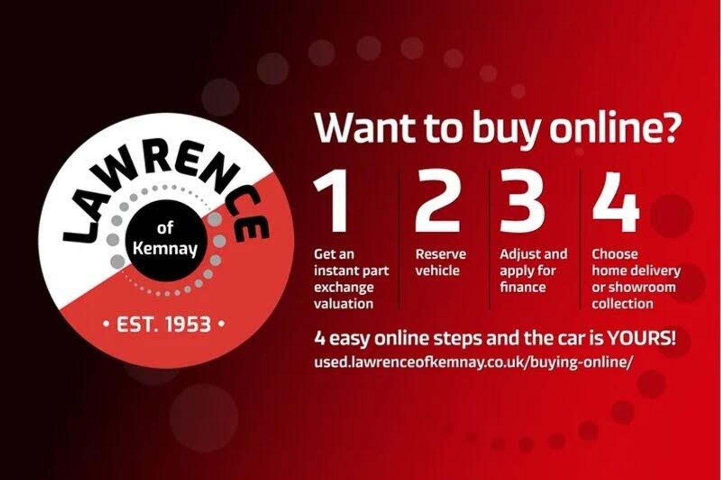 12 MONTH WARRANTY INC-++NATIONWIDE DELIVERY++RESERVE ANY CAR ONLINE VIA OUR WEBSITE FOR £99+++ FRONT & REAR PARKING SENSORS, AUTO LIGHTS & WIPERS, ADAPTIVE CRUISE CONTROL, AIR CON, SAT NAV, BLUETOOTH & DAB AUDIO, £35 ROAD TAX LEZ COMPLIANT Call us on 01467 629926 /Email / FB Messenger / 07855 542565 WhatsApp / Text. All our cars are professionally prepared on site by our Factory Trained Technicians and supplied with Balance of Manufacturers Warranty or a minimum 1 years Parts and Labour (Mechanical & Electrical) Warranty (LOK Select vehicles 3 months). Please get in touch to arrange an appointment to VIEW, TEST DRIVE or a PERSONALISED VIDEO to be sent or for any further information required on the car or a tailored FINANCE QUOTE Supplier of cars from £2995 up to Nearly New and everything in between! Our business exists thanks to our customers, we never forget that. Specification data is populated automatically via a third party source. Lawrence of Kemnay accept no responsibility for any errors in this data. If there is a particular vehicle feature that will affect your choice to purchase, please contact our sales team, who will be more than happy to confirm this for you.
