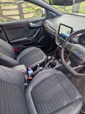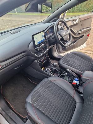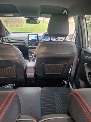 18in Alloy Wheels - 5-Spoke - Matt Black Machined Finish, ABS - Anti-lock Braking System, Acoustic Laminated Windscreen, Active Grille Shutter, Automatic Dimming Rear View Mirror, Automatic Headlights with Rain-Sensing Wipers and Auto High Beam, B&O Premium Audio System and Ford SYNC 3 Navigation, Carbon-Look Interior Deco Spears, Centre Console - Premium with Openable Stowage Area with USB Connectivity - 2 Cupholders and 12v Power Point, Courtesy Lights - Ambient LED Courtesy Lighting - Single Colour, Cruise Control - Lane Keeping Aid and Lane Departure Warning, Driver Assistance Pack - Design, Driver and Passenger Seat Lumbar and Height Adjustment, Drivers Manual 4-Way Seat Adjustment with Manual Lumbar Adjust, ESC - Electronic Stability Control and Hill Start Assist, Ecoboost Hybrid Tailgate Badge, Electric Windows - Front and Rear, Electronic Air Temperature Control - EATC, Emergency Brake Warning - Automatic Hazard Warning Lights, First Aid Kit Strap, Floor Mats - Front and Rear, Ford MegaBox Extended Bootspace, Ford Power Starter Button, Front Bumper - Unique ST-Line Sport Design - Body Colour, Front Fog Lights with Cornering lights and LED Rear Lamps, Full Digital 12.3in Instrument Cluster, Gear Knob - Aluminium, Handbrake - Black Sensico Trimmed with Stitching, Headliner - Deluxe, Instrument Panel - High Level, Intelligent Speed Assistance, Large Rear Spoiler - Body Colour with Centre High Mounted Stop Light, Locking Wheel Nuts, Lower Bodyside Moulding - Body Colour, Passenger 4-Way Seat with Lumbar Adjustment, Post Collision Braking, Power Steering, Power-Foldable Heated Door Mirrors with Puddle Lamps, Pre-Collision Assist with Autonomous Emergency Braking and Pedestrian-Cyclist Detection, Privacy Glass, Projector Headlamps with LED Daytime Running Lights, Puma Badge, Quickclear Heated Windscreen, Rear Bumper Body Colour - Diffuser, Rear Parking Sensors, Rear Seats - 2-Way Head Restraint Up-Down, Rear Seats - Second Row 60-40 Folding Seats, Remote Central-Double Locking, Restrain Device Pack, ST-Line Badge, ST-Line Body Styling Kit, ST-Line Flat-Bottomed Leather Steering Wheel with Unique Red Stitching, Selectable Driving Modes - Normal - Eco - Sport - Slippery and Trail, Soft-feel Gearshift Boot with Red Stitching, Speed Limiter, Sports Suspension, Tailgate - Manual, Thatcham Alarm, Traction Control and Emergency Braking Assistance, Trip-Fuel Computer, Tyre Pressure Monitoring System - TPMS, Wireless Charging Pad with Electronic Air Temperature Control EATC, Winter Pack, Partial Premium Sensico - Black with Red Stitching