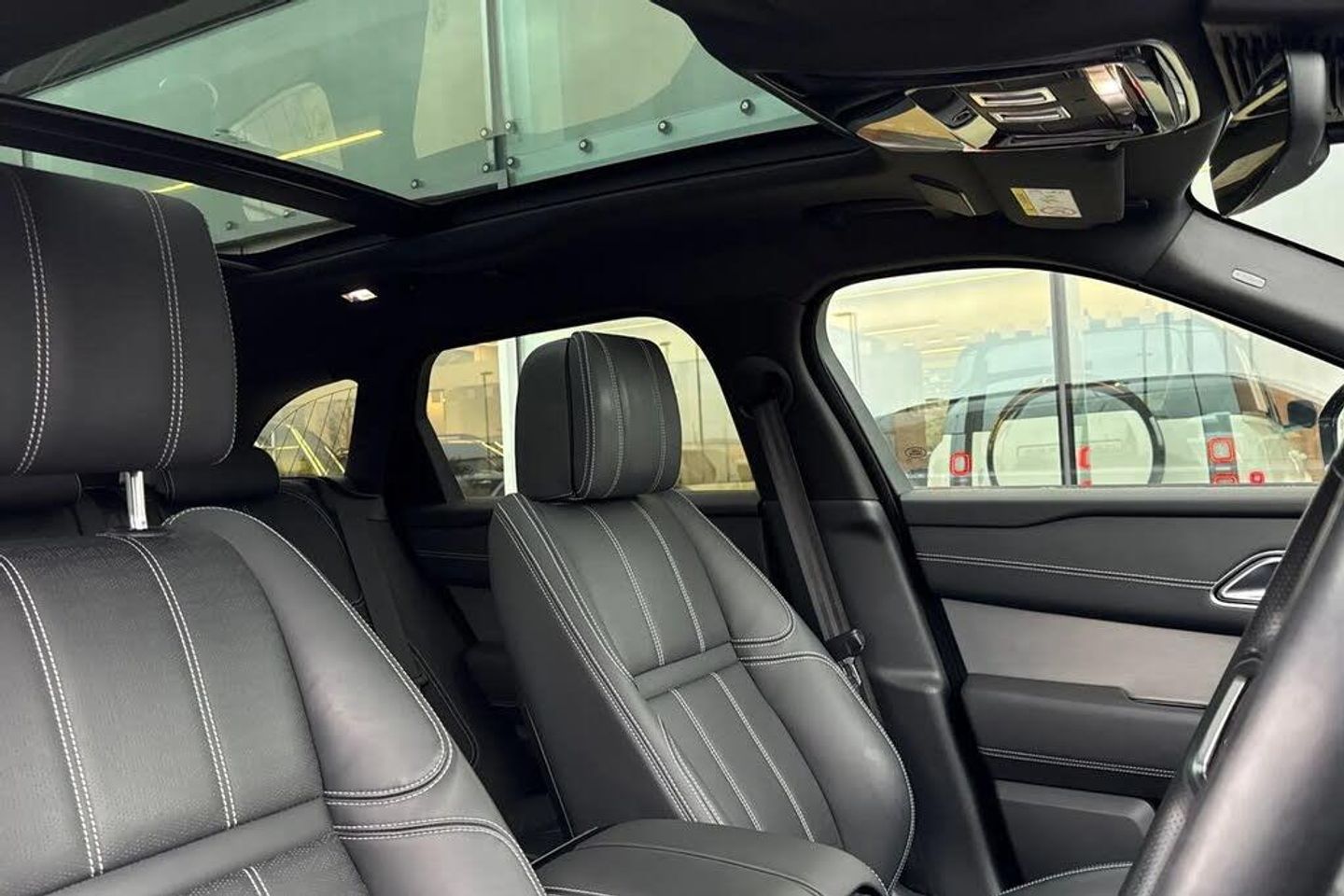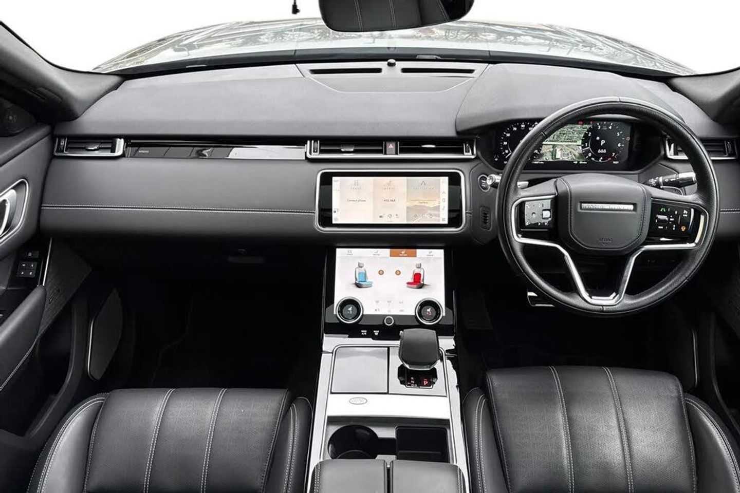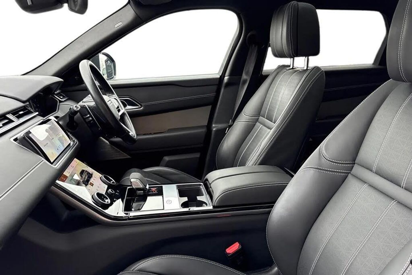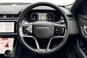 10" deployable touchscreen,3 seat bench in 2nd row,355mm front brakes and 325mm rear brakes,3x3 point rear seatbelts,8 speed automatic transmission,Acoustic laminated windscreen,Adaptive cruise control with steering assist,Adaptive dynamics,Adaptive front lighting system,All terrain progress control,Ambient lighting,Android Auto,Anti-lock braking system (ABS),Apple car play,Auto dimming interior rear view mirror,Automatic headlamp levelling,Automatic headlights,Blind spot assist,Bluetooth connectivity,Body coloured bumpers,Boot protection plate,Brake pad wear indicator warning light,Bright metal pedals,Cornering brake control,Curtain airbags,Customer configurable autolock,Digital Audio Broadcast radio-DAB,Door side intrusion beams,Driver airbag,Driver condition monitor,Driver/passenger sunvisors with illuminated vanity mirrors,DSC - Dynamic Stability Control,eCall emergency call system,Electric adjustable steering column,Electric heated/power fold door mirrors with approach lights and auto dimming driver side,Electric windows with one touch open/close and anti trap,Electronic air suspension,Electronic brake force distribution,Electronic parking brake,Electronic traction control,Emergency brake assist,Emergency braking,Flush deployable exterior door handles,Follow me home headlights,Front and rear seatbelt reminder,Global lock and unlock switch on driver door,Heated rear window with timer,Heated washer jets,Heated windscreen,Hill descent control,Hill launch assist,Immobiliser,InControl remote,Intrusion sensor,Isofix system on outer rear seats,Keyless entry,Land Rover InControl apps,Lane keep assist,LED 3rd brake light,Loadspace cover,Lock only switch on front passenger door,Locking wheel nuts,Low traction launch,Metal load space scuff plates,No badge - Removes engine badge,Online pack with data plan - Velar,Open differential with torque vectoring by braking,Overhead lighting console,Overhead stowage for sunglasses,Passenger airbag,Passive front headrests,Perimetric alarm,Pivi pro with connected navigation,Power operated child locks,Push button start,Rain sensor windscreen wipers,Rear air vents,Rear airbags,Rear animated directional indicators,Rear centre headrest,Rear collision monitor,Rear fog lights,Rear side wing doors,Rear traffic monitor,Rear wash/wipe,Remote central locking,Roll stability control,Satin Chrome gearshift paddles,Service indicator,Side airbags,Single front passenger seat,Single speed transfer box,Speed proportional electronic power assisted steering (EPAS),Steering wheel mounted controls,Tailgate/boot lid spoiler,Traffic sign recognition with adaptive speed limiter,Trailer stability assist,Trip computer,Twin front cupholders,Twin sliding front centre armrest,Tyre pressure monitoring system,Unpainted brake calipers,Velar and R-dynamic badge,Voice control system,Front Fog Lights,Heated Steering Wheel,Narvik Black Contrast Roof,Perforated Windsor Leather - Ebony,Privacy Glass,Rear Seat Remote Release Levers,Secure Tracker Pro