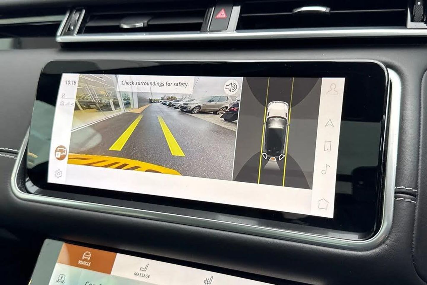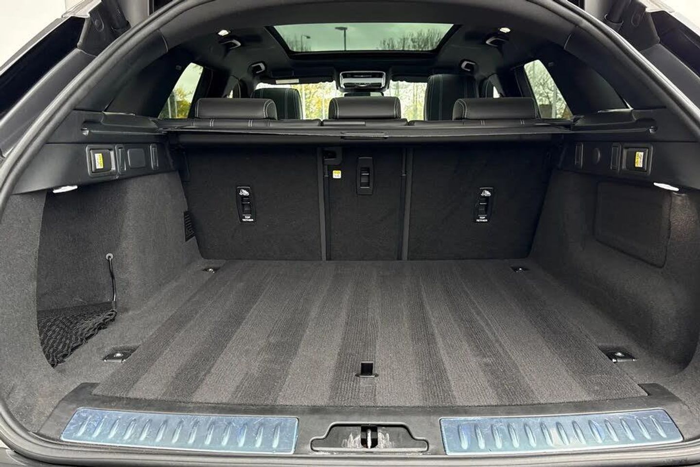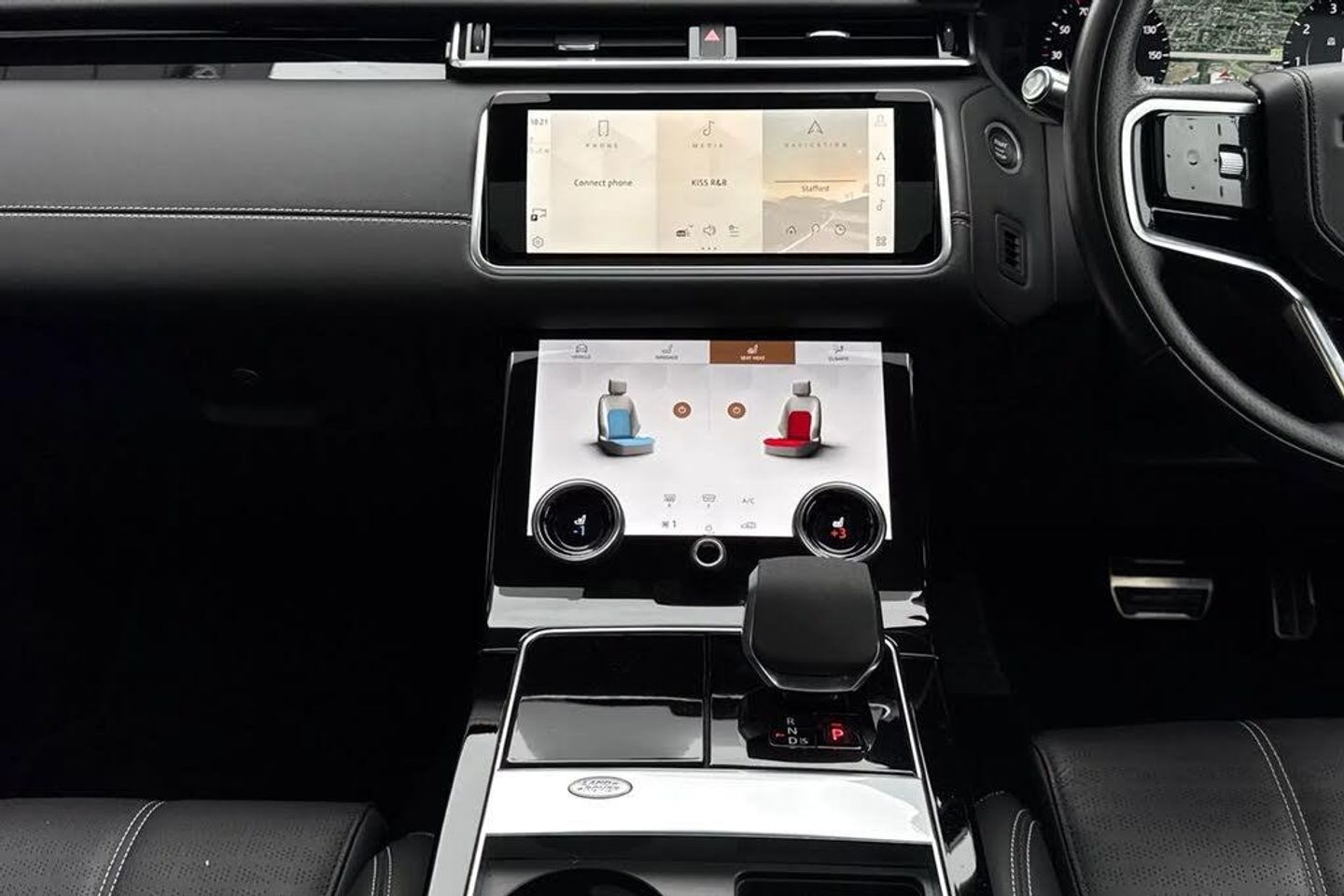 10" deployable touchscreen,3 seat bench in 2nd row,355mm front brakes and 325mm rear brakes,3x3 point rear seatbelts,8 speed automatic transmission,Acoustic laminated windscreen,Adaptive cruise control with steering assist,Adaptive dynamics,Adaptive front lighting system,All terrain progress control,Ambient lighting,Android Auto,Anti-lock braking system (ABS),Apple car play,Auto dimming interior rear view mirror,Automatic headlamp levelling,Automatic headlights,Blind spot assist,Bluetooth connectivity,Body coloured bumpers,Boot protection plate,Brake pad wear indicator warning light,Bright metal pedals,Cornering brake control,Curtain airbags,Customer configurable autolock,Digital Audio Broadcast radio-DAB,Door side intrusion beams,Driver airbag,Driver condition monitor,Driver/passenger sunvisors with illuminated vanity mirrors,DSC - Dynamic Stability Control,eCall emergency call system,Electric adjustable steering column,Electric heated/power fold door mirrors with approach lights and auto dimming driver side,Electric windows with one touch open/close and anti trap,Electronic air suspension,Electronic brake force distribution,Electronic parking brake,Electronic traction control,Emergency brake assist,Emergency braking,Flush deployable exterior door handles,Follow me home headlights,Front and rear seatbelt reminder,Global lock and unlock switch on driver door,Heated rear window with timer,Heated washer jets,Heated windscreen,Hill descent control,Hill launch assist,Immobiliser,InControl remote,Intrusion sensor,Isofix system on outer rear seats,Keyless entry,Land Rover InControl apps,Lane keep assist,LED 3rd brake light,Loadspace cover,Lock only switch on front passenger door,Locking wheel nuts,Low traction launch,Metal load space scuff plates,No badge - Removes engine badge,Online pack with data plan - Velar,Open differential with torque vectoring by braking,Overhead lighting console,Overhead stowage for sunglasses,Passenger airbag,Passive front headrests,Perimetric alarm,Pivi pro with connected navigation,Power operated child locks,Push button start,Rain sensor windscreen wipers,Rear air vents,Rear airbags,Rear animated directional indicators,Rear centre headrest,Rear collision monitor,Rear fog lights,Rear side wing doors,Rear traffic monitor,Rear wash/wipe,Remote central locking,Roll stability control,Satin Chrome gearshift paddles,Service indicator,Side airbags,Single front passenger seat,Single speed transfer box,Speed proportional electronic power assisted steering (EPAS),Steering wheel mounted controls,Tailgate/boot lid spoiler,Traffic sign recognition with adaptive speed limiter,Trailer stability assist,Trip computer,Twin front cupholders,Twin sliding front centre armrest,Tyre pressure monitoring system,Unpainted brake calipers,Velar and R-dynamic badge,Voice control system,Front Fog Lights,Heated Steering Wheel,Narvik Black Contrast Roof,Perforated Windsor Leather - Ebony,Privacy Glass,Rear Seat Remote Release Levers,Secure Tracker Pro