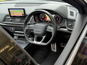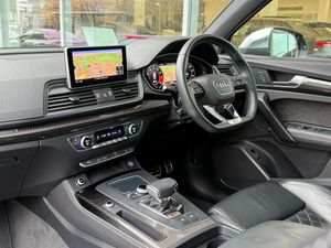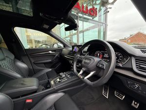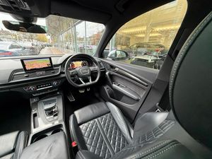 2 x SDXC Card Readers, 2 x USB Charging Ports and 1 x AUX-IN, 20in Alloy Wheels - 5-Twin-Spoke Star Design Contrasting Grey - Diamond Cut, 4-Way Electric Lumbar Support, 6-Airbag System, Aluminium Roof Rails, Aluminium-Effect Door Mirror Housings, Anti Theft Locking Wheel Bolts, Anti-Theft Alarm, Audi Beam, Audi Connect Infotainment Services - 3 Month Trial, Audi Connect Safety and Service - e-call, Audi Drive Select, Audi Parking System Plus, Audi Pre-Sense City, Audi Smartphone Interface, Audi Sound System, Auto-Dimming Rear-View Mirror, Automatic Headlight Adjustment, Bluetooth Interface, Brake Calipers Painted in Black with SQ5 Logo at the Front, CD Drive, Cloth Headlining in Black, Colour Drivers Information System with 7in Display, Contrast Stitching on Seats - Steering Wheel and Gear Lever Gaiter, Cruise Control with Speed Limiter, DAB Digital Radio, Deluxe 3-Zone Climate Control, Door Mirrors - Electrically Adjustable and Heated with Integrated LED Side Indicators, Dynamic Suspension, ESC - Electronic Stabilisation Control inc ABS - ASR and EDL, Electric Boot Lid Release, Electric Windows - Front and Rear, Electrically Adjustable Front Seats, Electromechanical Parking Brake, Electromechanical Power Steering, Email - Calendar and Text Messages can be Displayed on your Vehicles MMI, Extended Interior Upholstery Pack, First Aid Kit and Warning Triangle, Front Centre Armrest, Front Sports Seats with S Embossed Logo, Front and Rear Floor Mats, Gear-lever with Diamond S Badge in Black Leather, Headlights - High-Beam Assist, Heated Front Seats, High Multi-function 3-Spoke Leather Steering Wheel with S Badging and Aluminium Effect Paddles, High-Gloss Package, Hill Descent Control, Hill Hold Assist, ISOFIX Child Seat Mounting and Top Tether, Illuminated Door Sill Trims with S Logo, Inlays - Matt Brushed Aluminium, Key with SQ5 Logo, Keyless Go, LED Headlights with LED Rear Lights and Dynamic Rear Indicators, LED Interior Lighting Pack, LED Rear Lights, Light and Rain Sensor, MMI Navigation Plus including MMI Touch, Pedals in Stainless Steel, Pop-Up Bonnet for Pedestrian Protection, Power Operated Tailgate, Privacy Glass with Acoustic Glazing For Front Windows, Quattro with Self-Locking Centre Differential, Rear Bench Seat Plus, Rear Spoiler, Remote Central Locking, Removable Luggage Compartment Floor, Removable Net Partition, S Dual-Branch Tailpipe Design in Matt Aluminium, S Instrument Dials, S Line Front and Rear Bumpers, S Line Side Skirts, S Lower Front Air Inlet, S Radiator Grille in Matt Twilight Grey with Horizontal Matt Aluminium Struts, S Rear Diffuser in Body Colour with Matt Aluminium Surrounds with Honeycomb Grille in Black, S Side Air Inlet Grille in Matt Titanium Black with Horizontal Inlays in Matt Aluminium, S Suspension - Damper Control, Seat Belt Monitoring, Side and Rear Windows in Heat-Insulating Glass, Split Folding Rear Seat Bench - 40-20-40 with Rear Seat Armrest, Stainless Steel Loading Sill Protector, Tool Kit and Car Jack, Tow Bar Preparation, Tyre Pressure Warning Light, Tyre Repair Kit, Underbody Protection in Body Colour, Voice Control System, Windscreen with Acoustic Glass, quattro On Demand, 21in Alloy Wheels - 5-Arm Polygon Design Audi Sport, Brake Calipers - Red, Panoramic Glass Sunroof