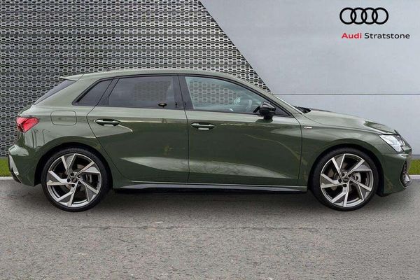 Anti-theft alarm (7AL), Audi connect Navigation & Infotainment Plus (IT3), Audi drive select (2H6), Audi phone box Light (9ZV), Audi virtual cockpit Plus (9S9), Bumpers, S line (2JD), Camera-based traffic sign recognition (QR9), Child-proof lock, electrically operated (4H5), Daytime running lights (8K4), Digital audio broadcasting (QV3), Electromechanical power steering (1N3), Front head restraints (5ZF), Hold assist (UH2), Light/rain sensor (8N6), Mild hybrid (0K4), MMI Navigation plus with MMI touch (7UG), MMI radio plus (I8Y)