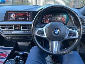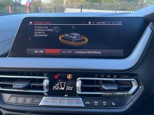 Active guard plus, Attentiveness assist, BMW emergency call, BMW Online services, BMW Teleservices, Check Control warning system for monitoring of lights and door/luggage compartment open warning, Connected eDrive Services, Eco pro mode, Integrated owners handbook, Oil sensor for level and grade, On board computer, Optimum shift indicator, Personal Profile, Pull away assistant, Speed limiter, Bluetooth audio streaming, DAB Digital radio, Auto dimming rear view mirror, Automatic headlight beam throw control, Automatic windscreen wipers and automatic headlight, Body colour door handles, Body colour mirror caps, Chrome 'M' logo side designation, Chrome exhaust tailpipe in single, round (Exhaust tailpipe, stainless steel - single, round), Chrome kidney grille frame with Satin Aluminium struts, Direction indicator side lights in exterior mirrors, Electric folding and anti dazzle exterior mirrors, Fading support, Follow me home headlights, Front and rear bumper system with replaceable deformation elements, Front and rear electric windows with open and close fingertip control, anti trap facility and comfort closing, Front door sill finishers in black plastic with M designation in metallic look, Green tinted heat protection glazing, Heated, electrically adjustable exterior mirror aspheric on driver side, convex on passenger side, High gloss shadowline window frame, mirror frames and B/C pillar embelisher trim, High level third brake light, LED daytime running lights, LED eyebrow turn indicators, LED front fog lights, Matt black air guide grilles, Model designation on right side of tailgate, Nearside reverse light in rear light cluster, Preparation for high beam assistant, Rain sensor including auto headlights activation, Rear fog lights, Rear window wiper, Shark fin antenna, Visible VIN plate, 12V power socket in centre console, 3 rear seat head restraints, 3 spoke M sports design leather steering wheel finished in nappa leather with specific M badge, Anthracite headlining, Anthracite Velour floor mats, Child seat ISOFIX attachment for two outer rear seats and front passenger seat with anchorage points, Conditioned Based Service, Dakota leather upholstery with perforation and contrast stitching, Driver and front passenger seat heating, Folding rear clothes hook, Four grab handles integrated in roof lining, Front and rear door pockets, Front and rear door pockets with bottle holders, Front and rear side armrest integrated into door trim, Front Armrest foldable with integrated storage compartment, Front sports seats with electric side bolster adjustment, Glove compartment, Manual adjust steering wheel, Multi-function controls for steering wheel, Storage compartment in centre console, Sun visors with vanity mirrors and insert tab, Two zone automatic air conditioning, Welcome lighting, Electric pack A - Transporter, Additional interior lighting pack - 1 Series, Connected pack professional - 1 Series, Extended storage pack - 1 Series, Interior lights pack - 1 Series, Luggage compartment pack - 1 Series, M Sport aerodynamics pack - 1 Series, 2 tone horn, 3 point seatbelts on all seats, front pyrotechnic belt tensioners and belt force limiters, rear coded belt buckles, Airbags - front driver/passenger, front & rear curtain, front side, Anti lock braking system (ABS) with brake assist, Brake drying, Braking readiness, Crash sensor activating central locking release, hazard warning lights, fuel cut off, interior lighting + activation of safety battery terminal clamp, Driver and front passenger seat belt security check, Dynamic stability control + (DSC+), Dynamic Traction Control - DTC, Electrically operated hand brake, Front and rear disc brakes, Front passenger manual airbag deactivation, Seatbelt warning, Side impact protection, Tyre pressure monitoring system, Warning triangle and first aid kit, Automatic drive away locking facility, Central locking switch for all doors, fuel filler cap and luggage compartment, Deadlocking function system to all doors, Incorrect fuel protection system, Locking wheel bolts, Remote control with integrated key with High-gloss Black inlay and M designation, Start/stop button with comfort go keyless engine start and auto start stop deactivation button, Thatcham Cat.1 alarm with remote control and immobiliser, Aluminium lightweight construction, Anti roll bar front and rear, Balancer shaft, Diesel particulate filter, Drive Performance Control, Electronic differential lock, Lightweight engineering, M sport suspension, Contrast stitching on instrument panel, Reduced rolling resistance tyres