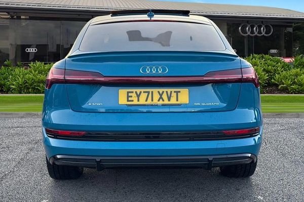 Alloys, Advanced Safety, Panoramic / Sunroof, Cruise Control, Sat Nav, Traffic Alert, AC/Climate, Parking Sensor;Check out this Audi Approved e-tron Sportback Launch Edition 55 Quattro in Antigua Blue with its 21" 5-V-spoke alloy wheels which look superb out on the roads. The Audi Matrix LED headlights with LED rear lights create that strong visibility in all weather conditions. The 4-zone climate control allows the driver and passengers to adjust to their prefered climate on all journeys. This Launch Edition comes equipped with a suite of notable features, including The Comfort and Sound pack which does include the Bang and Olufsen premium sound system for that excellent sound experience. It also includes the 360 degree camera which is great for maximising vision and to assist in all maneuvering situations. The Audi Side Assist offers enhanced safety and the Audi Phone Box with wireless charging allows you to fully charge or just top up your phones battery on any journey. Another great feature is the Parking System Plus with 360 degree sensors for effortless manoeuvring. Inside, you'll find a 2 Zone automatic air conditioning system and heated front seats for year round comfort. Furthermore, the generous boot space ensures practicality for everyday use and longer journeys, making it a versatile choice for families and individuals alike. The panoramic glass sunroof is perfect for those sunny days. The multimedia interface allows you to access different media, such as Apple Carplay and Android Auto, allowing you to use apps like Google Maps, Apple Music, Spotify and other apps also....