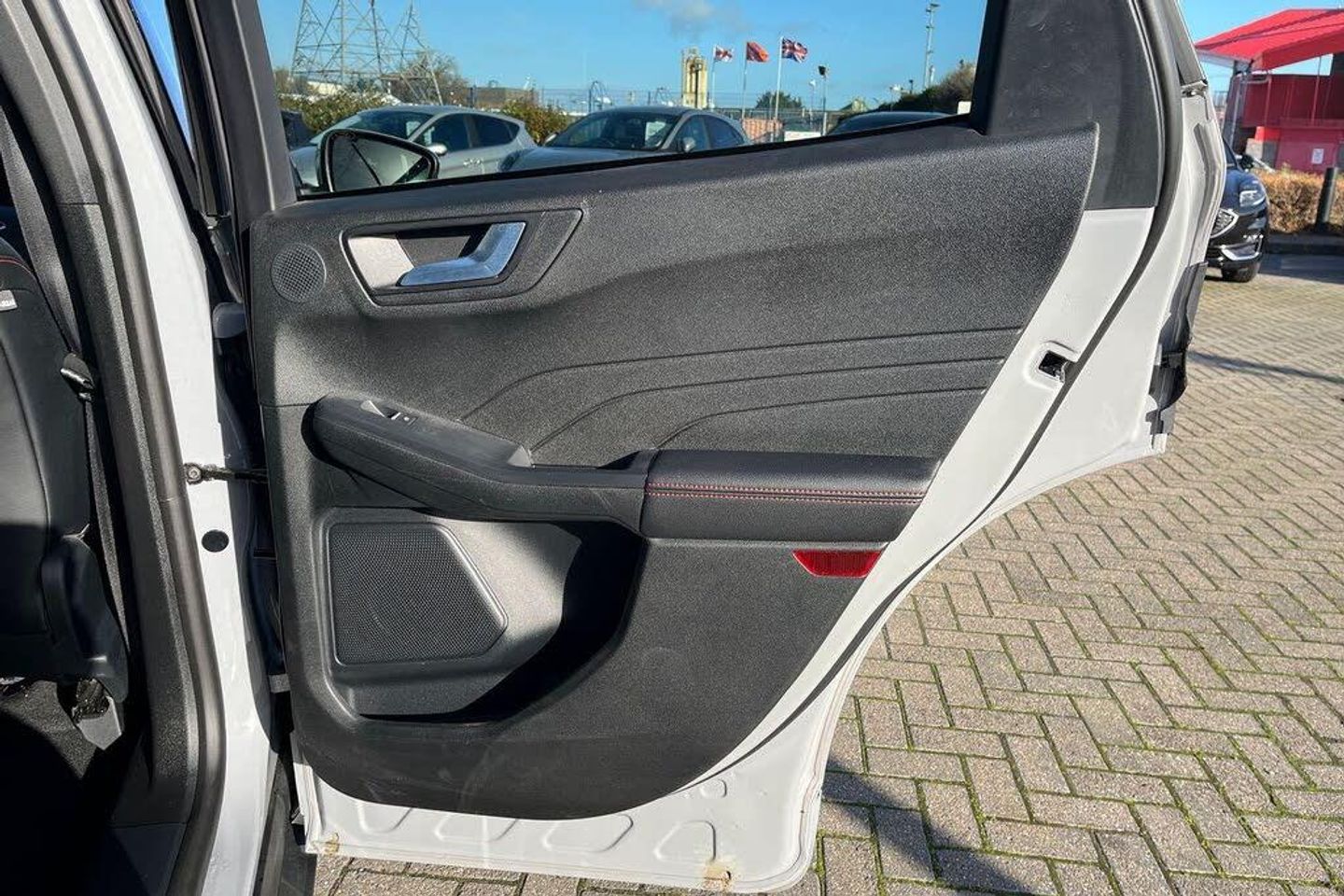 10-Way Power Adjustable Drivers Seat, 12V Power Point in Floor Console, 12v Power Point in Cargo Area, 12v Socket - Voltage Regulator, 19in Alloy Wheels - Gloss Black, 2nd Row Sliding Seats, 8-Way Manual Passenger Seat including Lumbar Support and Height Adjust, ABS - Anti-Lock Braking System with Enhanced Electronic Stability Control - ESC with Traction Control - Emergency Brake Assist - EBA - Hill Start Assist - Trailer Sway Control, Air Conditioning - Electronic Automatic Temperature Control - EATC, Airbag - Driver and Front Passenger Side, Airbag - Front Passenger Deactivation Switch, Airbags - Driver and Front Passenger, Airbags - Front and Rear Side Curtain, Aluminium - Finish Front Scuff Plates with ST-Line Script, Aluminium Foot Pedals - ST-Line Design, Ambient Lighting, Auto Dimming Rear View Mirror, Auto Wipers, Automatic Door Relocking, Black Roof Rails, Centre Console with Electronic Parking Brake, Child Locks - Manual on Rear Doors, Digital Colour 12.3in Instrument Cluster, Driver Assistance Pack, Driver and Passengers Sun Visor with Illumination, Dual Exhaust Tailpipes with Unique Brushed Stainless Steel Finish, EPAS - Electric Power Assisted Steering, Electric Parking Brake with Auto Hold, Electrical Charging Point in Second Row, Engine Immobiliser - SecuriLock, Exterior Door Handles - Body Coloured, Ford Easy Fuel System, Ford Keyfree System - Keyless Entry with Ford Power Starter Button, Ford SYNC3 DAB Navigation System, Front Lower Grille - Ebony Black Mesh, Front Seats - 2-Way Manual Height Adjust Passive Head Restraints, Front Seats - Drivers and Passengers Seatback Map Pockets, Front Seats - Sports Style V-shape with High Bolster, Front Upper Grille - Carbon Black Honeycombe Mesh and High-Gloss Black Surround, Front Windows - Laminated Glass, Front and Rear Bumper - Sporty Body Colour with Rear Ebony High-Gloss Insert, Front and Rear Floor Mats with Red Stitching, Front and Rear Parking Sensors, Gearshift - Automatic - Electronic Rotary Gearshift Dial, Glovebox Lights, Handsfree Power Tailgate, Headlights - Automatic Follow Me Home Lighting, Headlights - Automatic High Beam Assist, Headlights - Levelling System - Manual, Headlights - Unique Bending, Headliner - Sports Dark, Heated Driver and Passenger Seats, Heated Rear Seats, Heated Steering Wheel, Heated and Power Folding Door Mirrors with Puddle Lights, High-Mounted Brake Light, Kuga Badge, LED Fog Lights - Front, Lane Keeping Aid with Lane Departure Warning, Large Rear Spoiler, Load Compartment - Lights, Load Compartment - Tie Down Hooks, Load Compartment Carpet, Locking Wheel Nuts, Lower Bodyside Moulding - Body Colour, Lower Door Frame Beltline - Black, Mini Overhead Console with Sunglasses Holder Bin, MyKey, Power Door Deadlocks - Double Locking, Power Door Locks, Power Opening Panoramic Roof, Pre-Collision Assist with Autonomous Emergency Braking, Quickclear Heated Windscreen, Rear Duct on B-Pillar, Rear Lights - LED, Rear Privacy Glass, Rear Seat - 60-40 Split Folding Seats, Rear Seat Centre Head Restraint, Rear Seats - 2-Way Head Restraint Up-Down, Rear Seats - Folding Centre Armrest with Integrated Cup Holder, Rear Seats - Sliding Seat Adjust Tracks - Fore-Aft, Rear View Camera, Red Brake Calipers, Remote Tailgate Release, Removable Package Tray, Rocker Panel Mouldings - Body Colour - ST-Line Design, ST-Line Bodystyling Kit, ST-Line Front and Rear Bumper Moulding - Body Colour, Seat Belt - Drivers - Front Passenger and Rear Seat Belt Reminder Alert, Seat Belts - Front 3-Point Seatbelts with Load Limiter, Seat Belts - Front Height Adjustable, Seat Belts - Rear Retractable Rear Belt - 3-Point All Positions, Seats - ISOFIX Mounting Provision for Child Seats - Outer Seats Only, Selectable Drive Modes, Single Rear Fog Light, Steering Column - Locking Electric, Steering Column - Rake and Reach Adjustment, Steering Wheel - ST-Line Sports-Style Perforated Sensico-Trimmed with Red Stitching, Suspension - Sports, Tailgate Handle - Body Colour, Technology Pack, Tether Anchorage - Two Rear Seat Top Tether Anchorage Restraints, Thatcham Category 1 Perimeter and Volume Sensing Alarm, Tow Hooks - Front and Rear, Trip Computer, Tyre Inflation Kit, Tyre Pressure Monitoring System, Upper Door Frame Beltline - Black, Windows - Power Front and Rear with Global Closing, Winter Pack, Wiper - Intermittent Rear Window Wiper, Wrong Way Alert, eCall