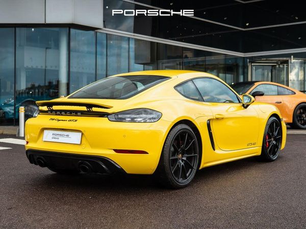 Yellow interior.For sale: 2023 Porsche 718 Cayman 4.0 GTS Coupe 2dr Petrol PDK Euro 6 (s/s) (400 ps) in striking Yellow. This exceptional coupe is presented as a used vehicle and stands out with its unmistakable Porsche design and carefully selected factory options.The exterior, finished in Yellow, is complemented by LED main headlights including Porsche Dynamic Light System (PDLS), providing both style and advanced illumination. The two-door, two-seat configuration emphasises the sporting intent of the 718 Cayman GTS, with features designed to enhance both comfort and performance.Inside, the cabin is specified with Adaptive Sports Seats Plus, electrically adjustable in 18 ways, offering tailored support for both driver and passenger. The Light Design Package further enhances cabin ambience, while the seat belts and the Sport Chrono stopwatch instrument dial are finished in Racing Yellow, offering a distinctive and cohesive interior aesthetic.The car is equipped with the BOSE® Surround Sound System, delivering an engaging audio experience. ParkAssist is fitted front and rear, including a reversing camera, to provide confidence and ease in a variety of parking situations.Key features include:Porsche Active Suspension Management (PASM), BOSE® Surround Sound System, Sport Chrono stopwatch instrument dial in Racing Yellow, LED main headlights including Porsche Dynamic Light System, Seat belts in Racing Yellow.Options fitted to this vehicle:Adaptive Sports Seats Plus - Electrical 18 Ways, BOSE Surround Sound System, LED Main Headlights including Porsche Dynamic Light System (PDLS), Light Design Package, ParkAssist (Front and Rear) with Reversing Camera, Seat Belts - Racing Yellow, Sport Chrono Stopwatch Instrument Dial - Racing Yellow.This 2023 Porsche 718 Cayman 4.0 GTS Coupe presents an excellent opportunity for those seeking a distinguished combination of sporting character and refined specification. For further details or to arrange a viewing, please contact us.