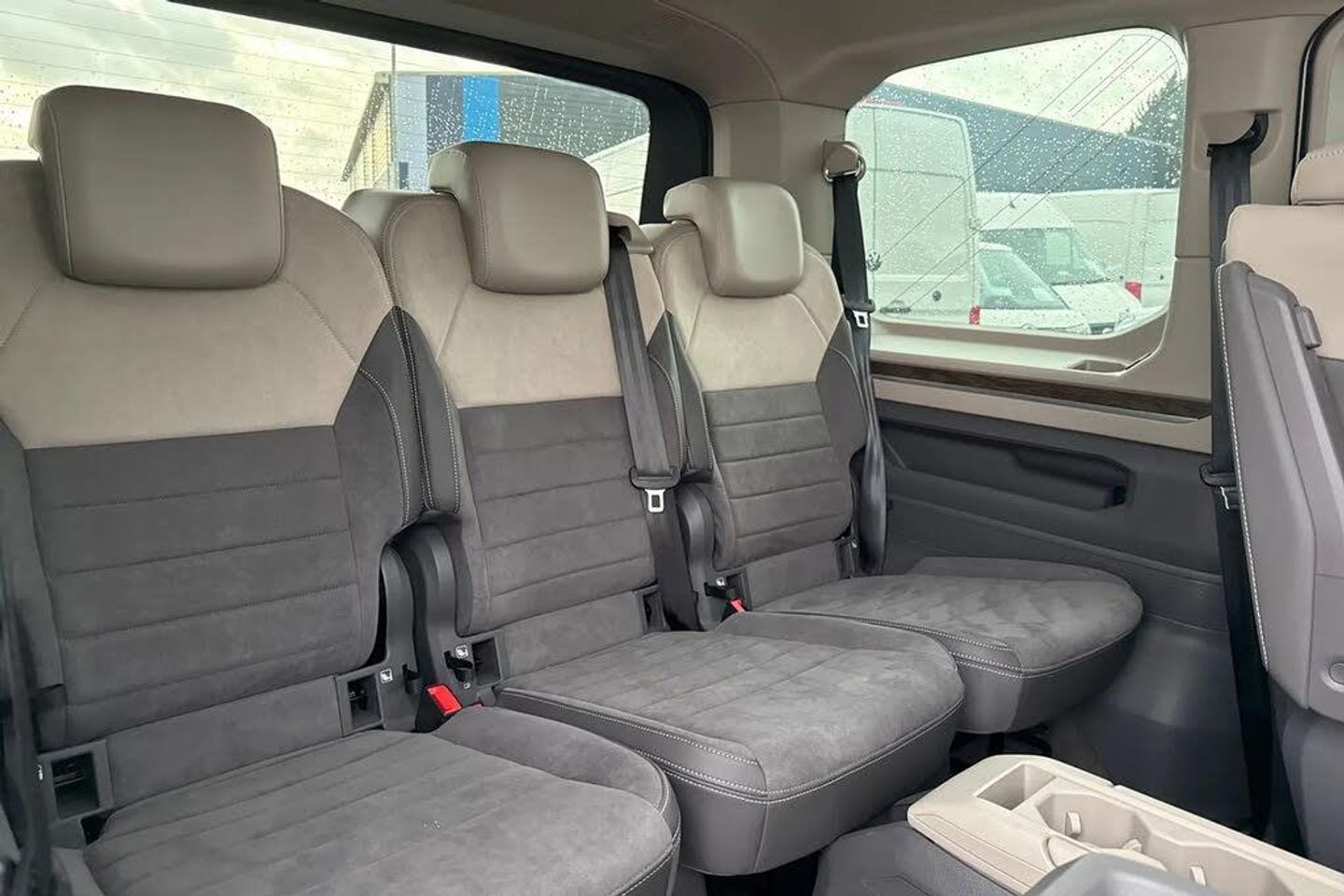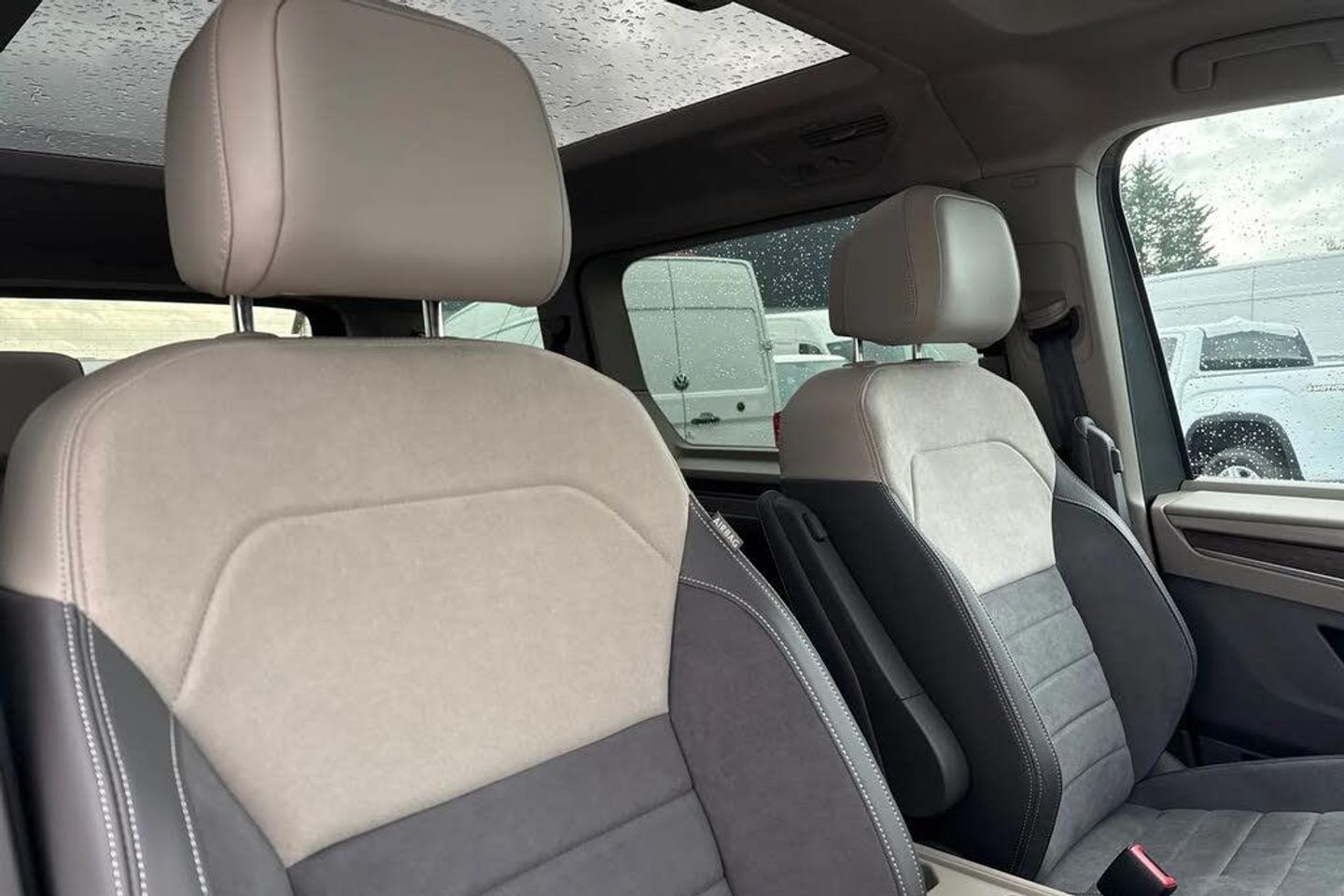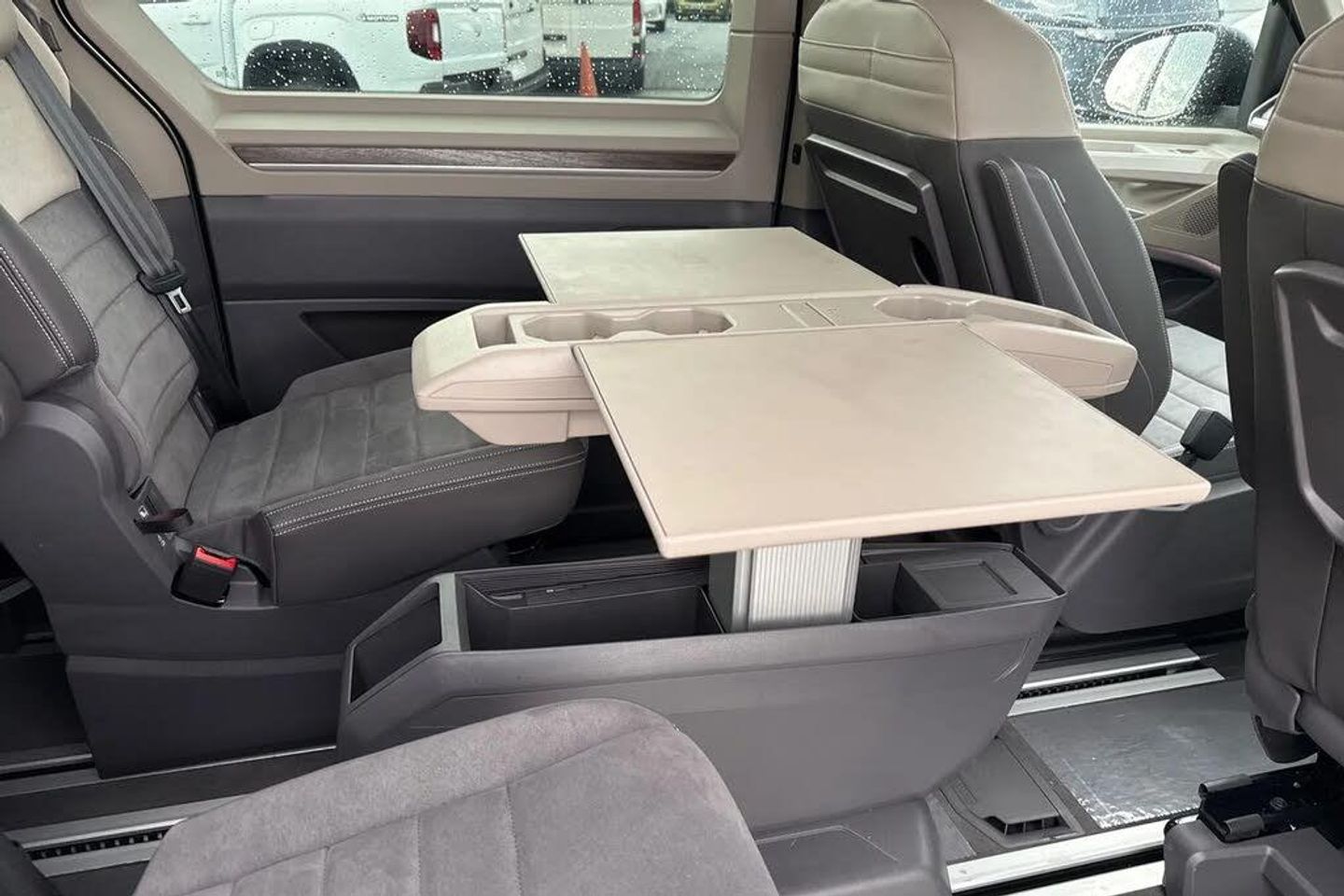Indium Metallic Paint,19" "Halmstadt" light-alloy wheels in black,7-Seat Conference Package,Panoramic sunroof,Privacy glass,Keyless Advance,Navigation system "Discover Pro",Electric sliding door - left/right,Adaptive cruise control,Lane change Assist,Interior noise reduction measures,Rain sensor,Rear wiper,Body coloured exterior door handles,Glossy black painted radiator grille with 2 chrome trims,Sliding door on left/right with power latching,Automatic headlight control with welcome home lights,Dynamic headlight range control (self adjusting),Front fog lights,LED 3rd brake lamp,LED main headlamps with LED separate daytime running light,LED rear combination lamps,ABS,Autonomous emergency braking front assist with pedestrian and cyclist monitoring,Electronic stability control (ESC) and Electromechanical brake booster,Traction control,Driver alert system,Dynamic road sign display,Lane keeping system Lane Assist,PAS,Break away auto dimming rear view interior mirror,High gloss black exterior mirror housing,3x3 point rear seat belts,Driver and front passenger airbag with front passenger airbag deactivation,First aid kit with warning triangle and safety vest,Rear door child safety locks,Side and curtain airbags for driver and front passenger,curtain airbags for outer seats in rear,centre airbag in front,Tyre pressure monitoring system,Carpet mats in cab,Reinforced carpet floor covering in passenger compartment,Illumination lockable glovebox compartment,Load compartment partition to 20kg with bag hooks and luggage net,Luggage compartment lid power latching with unlatching from inside,Multifunction leather steering wheel with tiptronic,Slidable multifunction table/centre console with 3 cup holders,Storage compartment under the 2nd and 3rd row seat and two waste bins,Surround lighting in door area,Sun visors with illuminated vanity mirror,ticket holder on driver side with airbag warning label on sunvisor and B-pillar,App connect including wireless Apple CarPlay,Mobile phone interface,Voice control system including Alexa web app,We connect preparation,2 USB-C ports in front and 4 USB-C ports in passenger compartment,Digital radio reception (DAB+),eCall emergency system,Tailgate,Digital Cockpit Pro with 10.25" Display,Dark silver brushed decorative inserts,7 single seats removable/movable,Front and rear head restraints,Removable armrests for front seats with power adjustable lumbar support and folding table for 2nd row passenger seats,Removable armrests in 2nd row passenger seats,Anti theft alarm system with interior monitoring in cab,backup horn and towing protection,Central locking system with keyless start and safelock,Charging cable Mode 3 Type 2 / 3 (16A)
