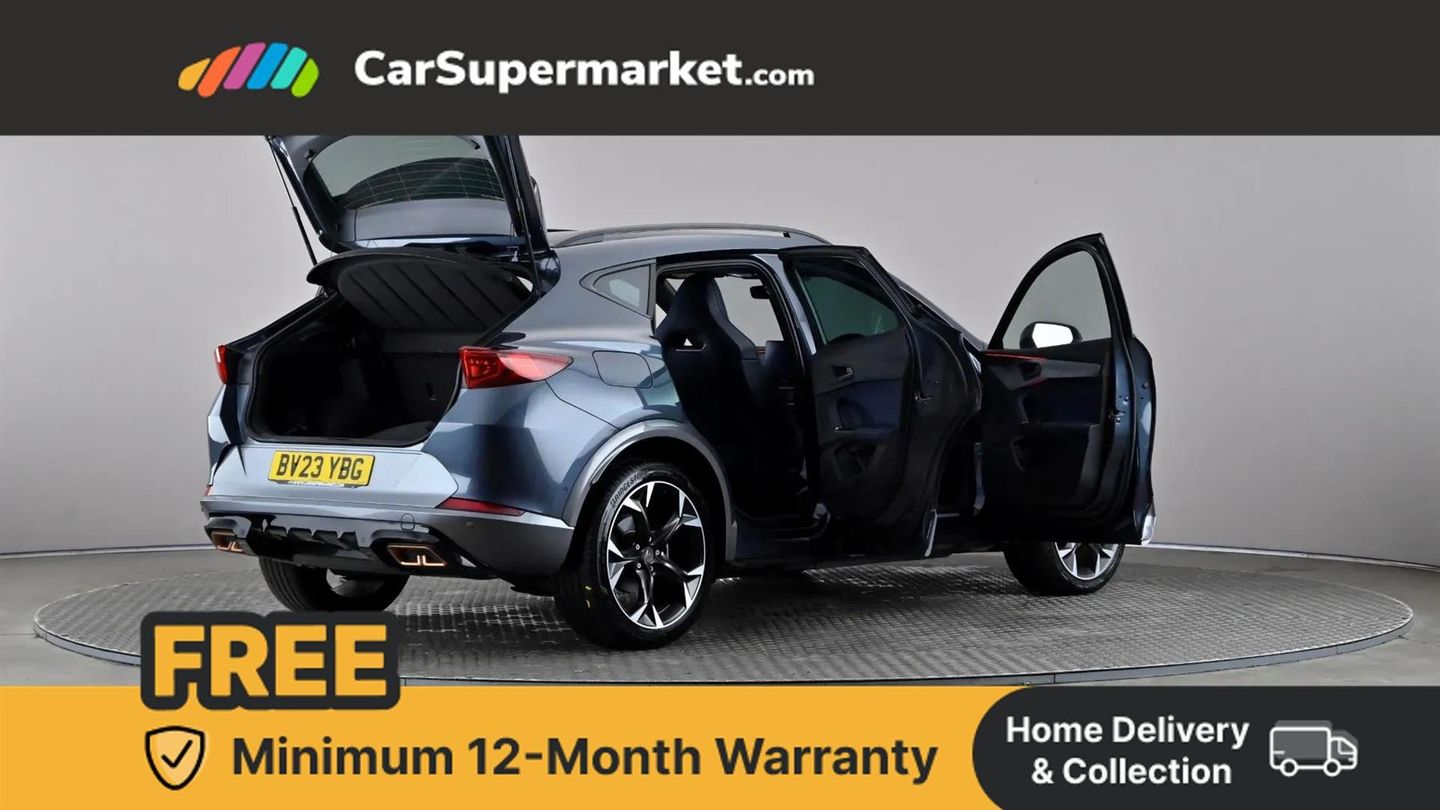 Digital Cockpit, Sat Nav, Parking Sensors, Cruise Control, Adaptive Cruise Control, Apple CarPlay, Wireless Phone Charging, Heated Steering Wheel, Keyless Entry, 19" Alloy Wheels;This 2023 CUPRA Formentor eHybrid V2 presents a good opportunity with its low mileage of just 15,795 miles, a testament to its single owner and careful use. This Euro 6 compliant plug in hybrid combines a 1.4 litre petrol engine with electric power, offering an efficient and dynamic driving experience. Its MOT is valid until May 2026, and it recently underwent its last service on 12th November 2025 at 15,795 miles. The V2 trim level is well equipped, featuring a Rear View Camera for enhanced parking assistance, making manoeuvring effortless. Stay connected and entertained with Wireless Apple CarPlay, and keep your devices powered up with the Wireless Phone Charger. For effortless journeys, the Predictive Adaptive Cruise Control with Speed Limiter takes the stress out of longer drives.