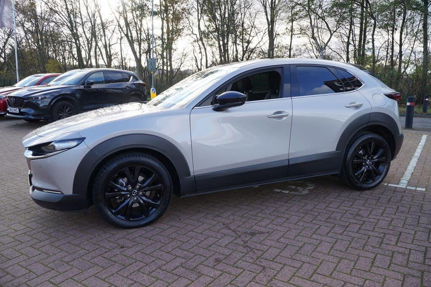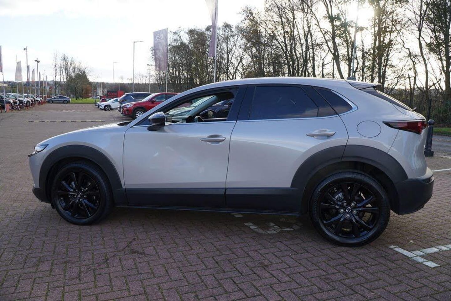 10.25in Colour Centre Display, 12V Electrical Power Outlet, 18in Alloy Wheels - Black Metallic, ABS - Anti Lock Braking System, AM-FM-DAB Radio with 8 Speakers, Adaptive Cruise Control - Mazda Radar Cruise Control, Adjustable Speed Limiter, Advanced e-Call with GPS, Airbags - Curtain Front and Rear, Airbags - Front Dual Stage Driver and Single Stage Front Passenger, Alexa In-Car Voice Assistant, Auto Dimming Rear View Mirror, B-Pillar and C-Pillar Garnish - Piano Black, Blind Spot Monitoring with Rear Cross Traffic Alert, DSC - Dynamic Stability Control, Door Mirrors - Black - Electrically-Adjustable - Heated - Auto Power Folding, Door Panel Trim - Dark Cloth Insert, Door Storage - Driver - Front Passenger and Two Rear, Drive Selection Switch, Driver Attention Alert - DAA, Drivers Knee Airbags, Dual Zone Climate-Controlled Air-Conditioning with Rear Air Vents, Electric Power Assisted Steering - EPAS, Electric Windows - Front and Rear with One-Touch Auto Down - Up, Electronic Parking Brake with Auto-Disengage Function - Auto-Hold Function, Emergency Stop Signalling System - ESS, Emergency Tyre Repair Kit, Engine Start-Stop Button, Front Grille - Black Gloss Finish, Front Passenger Airbag Cut-Off Switch, Front Side Airbags, Front and Rear Parking Sensors, G-Vectoring Control Plus - GVC Plus, Gear Shift - Leather-Wrapped, Gear Shift Indicator, Glovebox with Interior Illumination, Grab Handles - Driver - Front Passenger and Two Rear with Coat Hooks, Grille - Chrome Finish Signature Wing, Head-Up Display, Headlights - Coming-Leaving Home, Headlights - Dusk-Sensing Lights, Headlights - LED with Auto Headlight Levelling, Heated Front Seats with 3-Stage Settings, High Beam Control, Hill Launch Assist - HLA, ISOFIX Child Seat Anchorage for Outer Rear Seats, Instrument Panel 7in TFT Colour Driver Display, Integrated Bluetooth System, Interior Colouration - Black with Red Stitch, Kodo Turn Signal, LED Headlights with Halogen Daytime Running Lights, LED Interior Lighting - Front and Rear, LED Rear Combination Lights, Lane Keep Assist with Lane Departure Warning System, Leather-Wrapped Steering Wheel with Telescopic and Tilt Adjustment, Luggage Compartment - Light, Mazda Connected Services, Mazda Hybrid Navigation System, Multimedia Commander, Power Liftgate, Pre-Crash Safety - Smart Brake Support - SBS, Privacy Glass - Rear and Rear Side Windows, QI Wireless Mobile Phone Charging, Rain-Sensing Front Wipers, Rear Roof Spoiler - Gloss Black, Rear Seats - Folding Centre Armrest Equipped with Two Cup Holders, Rear Wiper, Remote Central Locking with Deadlocking, Reversing Camera, Roof Headlining - Light - Ceiling and Pillars, Roof Mounted Sunglasses Holder, Seatback Pocket - Located on Rear of Front Passenger Seat, Seatbelt Reminder Audible Warning, Seats - 60-40 Split Folding Rear, Seats - Drivers Manual Slide-Recline Height and Tilt Adjustment, Seats - Front Passenger Manual Slide - Recline and Height Adjustment, Smart Keyless Entry, Steering Wheel Mounted Audio and Bluetooth Controls, Storage Spaces - Front Centre Console with Two Cupholders, Sun Visors - Drivers and Front Passengers with Covered Vanity Mirror and Ticket Holder, TCS - Traction Control System, Tailpipes - Dual - Chrome Tip, Thatcham Accredited Alarm and Immobiliser, Three Height Adjustable Head Restraints, Traffic Sign Recognition, Trip Computer, Tyre Pressure Monitoring System, USB Type-C Input x2, Wireless Apple CarPlay and Wired Android Auto