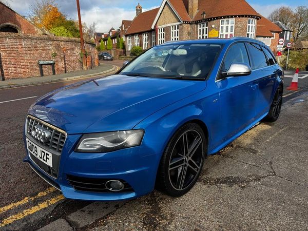Stunning High spec Audi S4 3.0 TFSi Automatic Quattro Avant, Presented in Sprint Blue with full Black/White Leather sports seats, Bang & Olufsen speakers, Electric front seats with drivers memory, Xenon headlights, Heated seats, Power folding mirrors, Carbon fibre inlays, 19'' Alloys