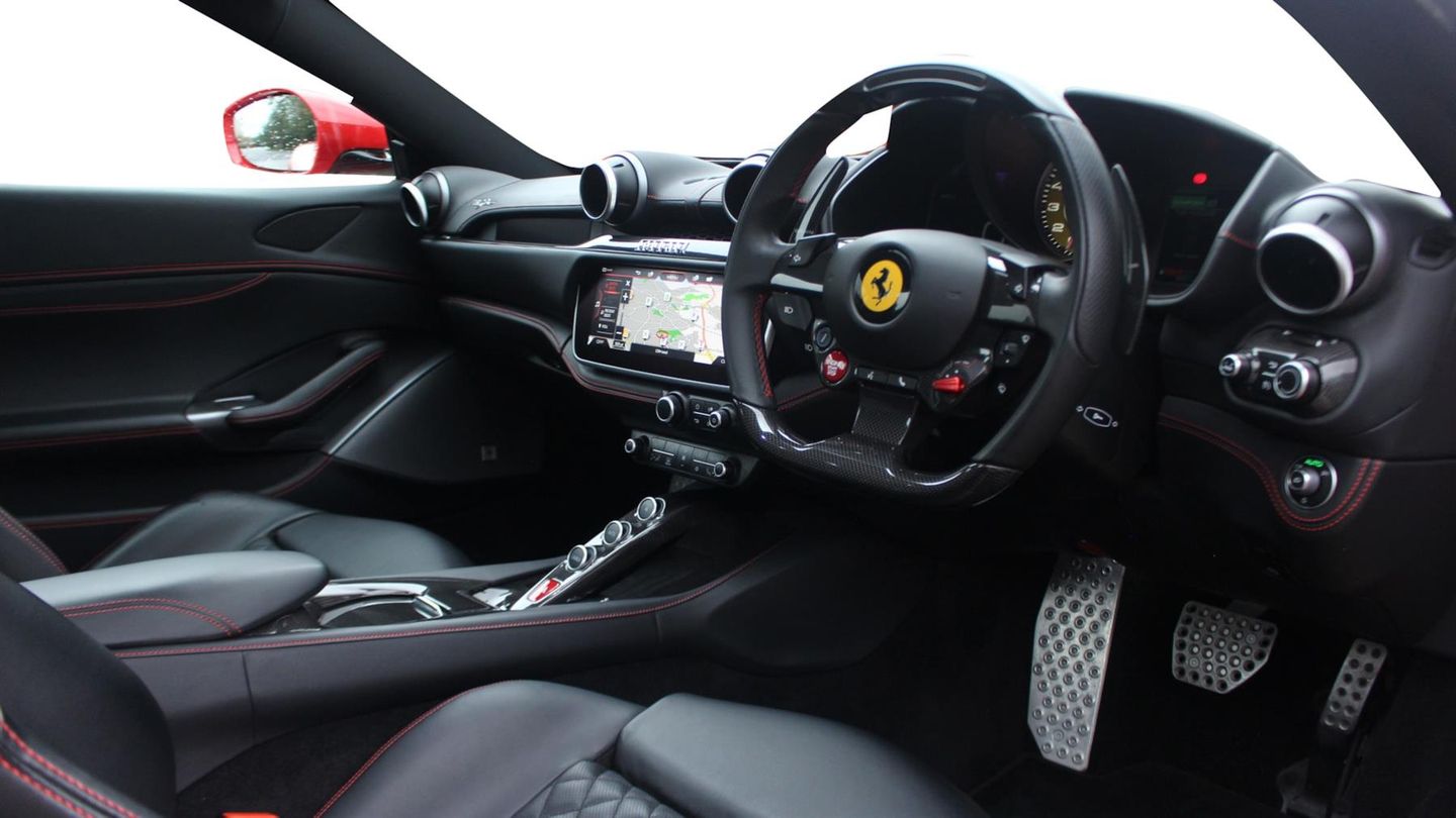 Carbon Fibre Driver Zone and LEDs,Carbon Fibre Centre Console,Carbon Fibre Exterior Sill Kicks,Carbon Fibre Dashboard Inserts,20" Forged Alloy Wheels in Matte Grigio Corsa,Passenger Display,Rear Parking Camera,Premium Sound System,Giallo Brake Calipers,Black Ceramic Exhaust Pipes,Scuderia Ferrari Shields,Cavallinos Stitched on Headrests in Rosso,Aluminium Footrest,Yellow Rev Counter,Full Electric Seats with Memory Function,Adaptive Front Lights,High Emotion Low Emission,Nero Carpets,Balance of Service Plan Until June 2027