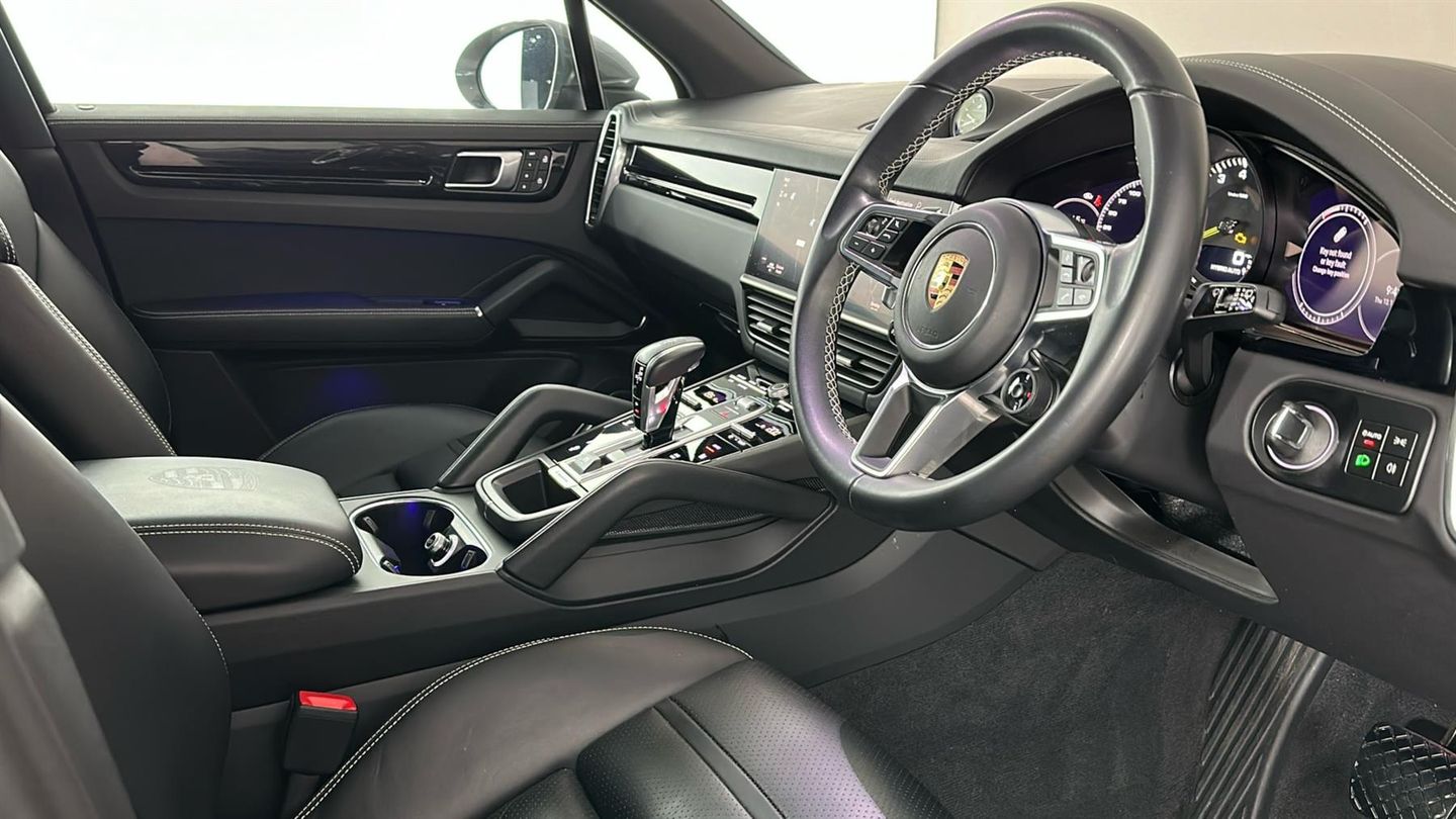 22" Cayenne Sport Classic Wheels in Satin Platinum,Panoramic Roof System,Wheel Arch Extensions in Exterior Colour,SportDesign Package in Black High Gloss,Adaptive Air Suspension with Level & Height Adjustment,Porsche Active Suspension Management,Interior Trim Package,Porsche InnoDrive with Adaptive Cruise Control,Head-Up Display,Privacy Glass,Tinted LED Main Headlights,Porsche Dynamic Light System,Burmester 3D High-End Surround Sound System,LED Main Headlights in Black with PDLS,Sport Chrono Package with Porsche Design Clock,ParkAssist with Surround View,Sports Tailpipes in Black,Exclusive Design Gear Selector,Decorative Stitching In Contrasting Colour,Smartphone Compartment with Wireless Charging,Slate Grey Seat Belts,Comfort Access,Porsche Crest Embossed on Front Headrests,14-Way Comfort Electric Seats with Memory Package,Ambient Lighting,Porsche Logo LED Door Courtesy Lights,Heated Steering Wheel,Lane Change Assist with Blind Spot Monitoring,Porsche Crest Embossed on Centre Console Armrests,Exclusive Design Fuel Filler Cap,Video Presentation Available,Two-Year Porsche Approved Warranty with Roadside Assist