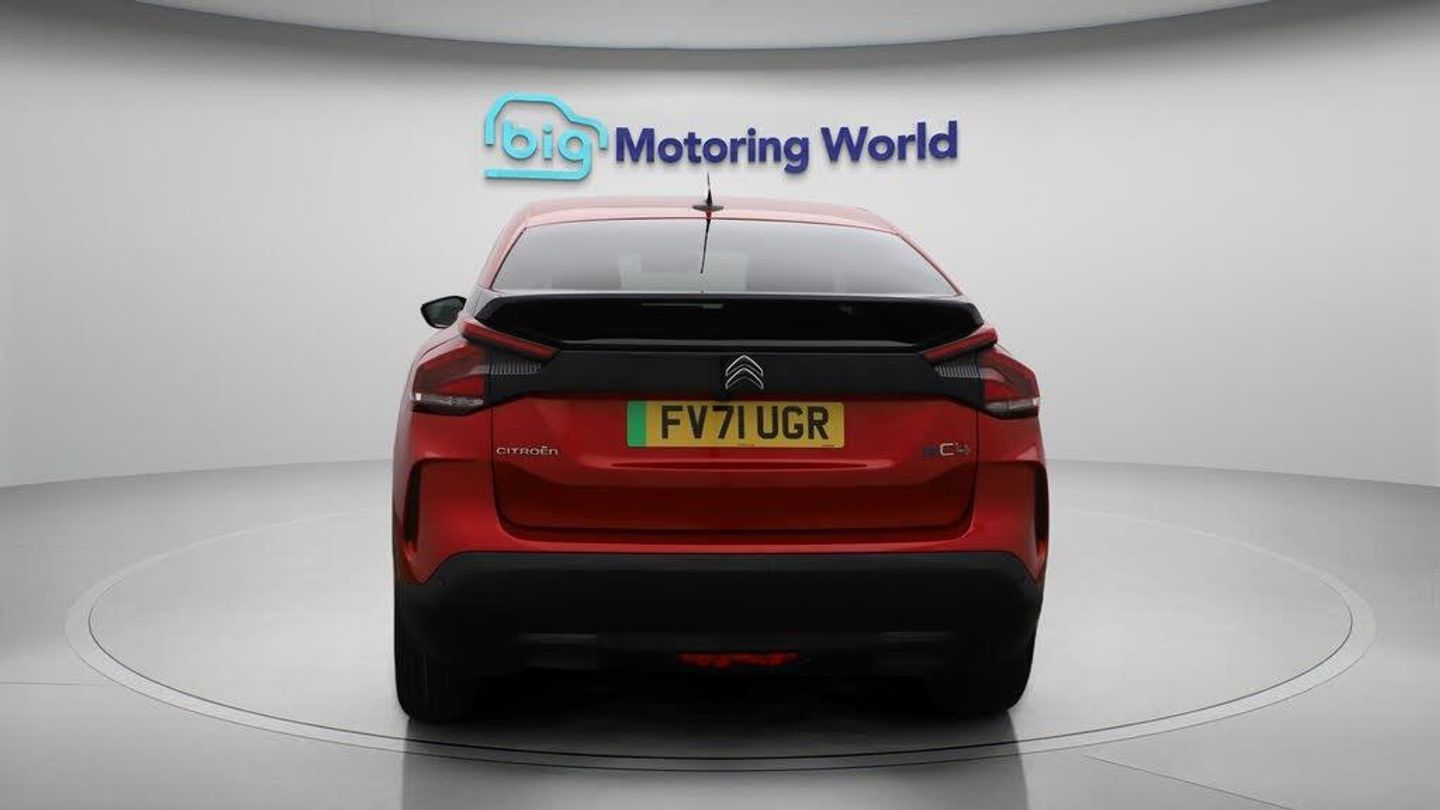 Head up Display,18'' alloy whee-Our Citroen e-C4 is finished in Red. Specification includes a range of fantastic features including Head up Display, 18'' alloy wheels, Leather Seats, Satellite Navigation, Privacy Glass, Heated Seats, Rear View Camera, Heated Steering Wheel, Bluetooth, Blind Spot Assist Specification information is supplied by CAPHPI and may vary to the actual car. This data does not form any part of a buying contact. Please check specification prior to purchase in-store. The MOT is valid until September 2026, visit bigmotoringworld.co.uk for more photos, a 360 tour, service history and a free HPI report.Were BIG on peace of mind and this Red Citroen e-C4 has completed our comprehensive 200 point inspection and passed all checks. Its ready for you to drive away with immediate collection in-store. We include a 90-day warranty as standard plus an option to extend for up to 3 years.Reserve this car exclusively for you, safely and securely at bigmotoringworld.co.uk, with a fully refundable £99 deposit. Test drive before you buy, with no commitment, no hassle and a completely haggle free experience. Still searching and want to see thousands more cars? We are BIG on choice with over 8000 cars to choose from.Visit our award winning web site bigmotoringworld.co.uk.Were Big Motoring World and were BIG on what matters to you.
