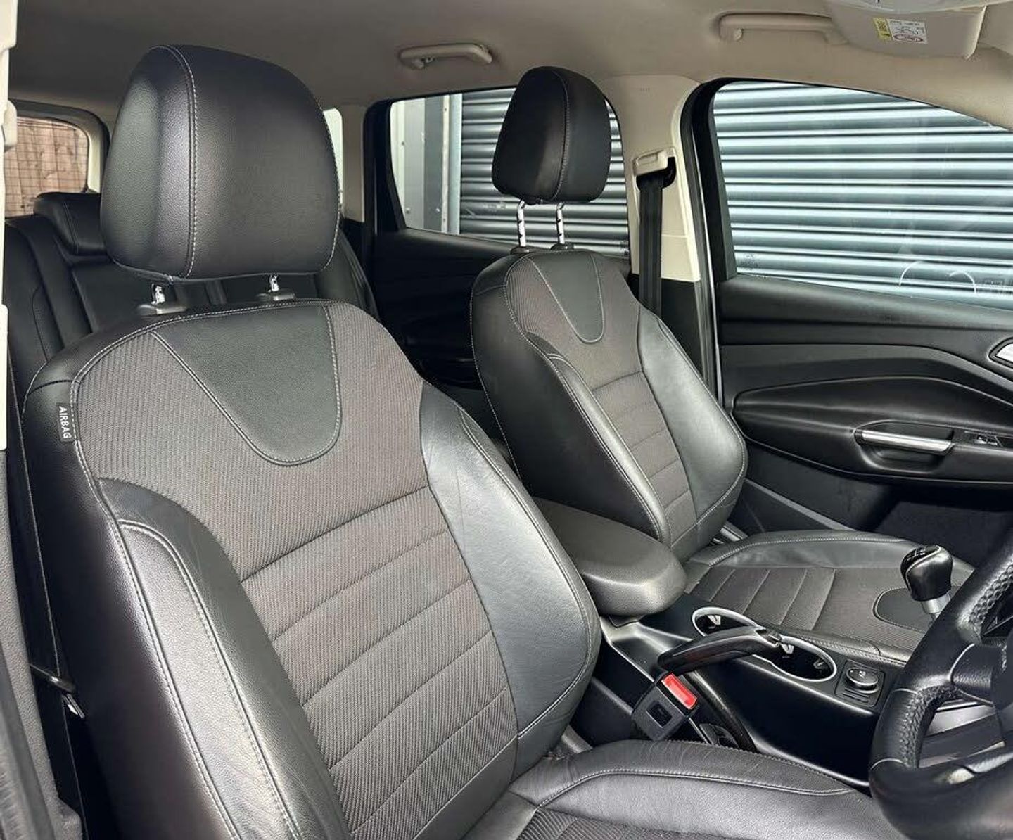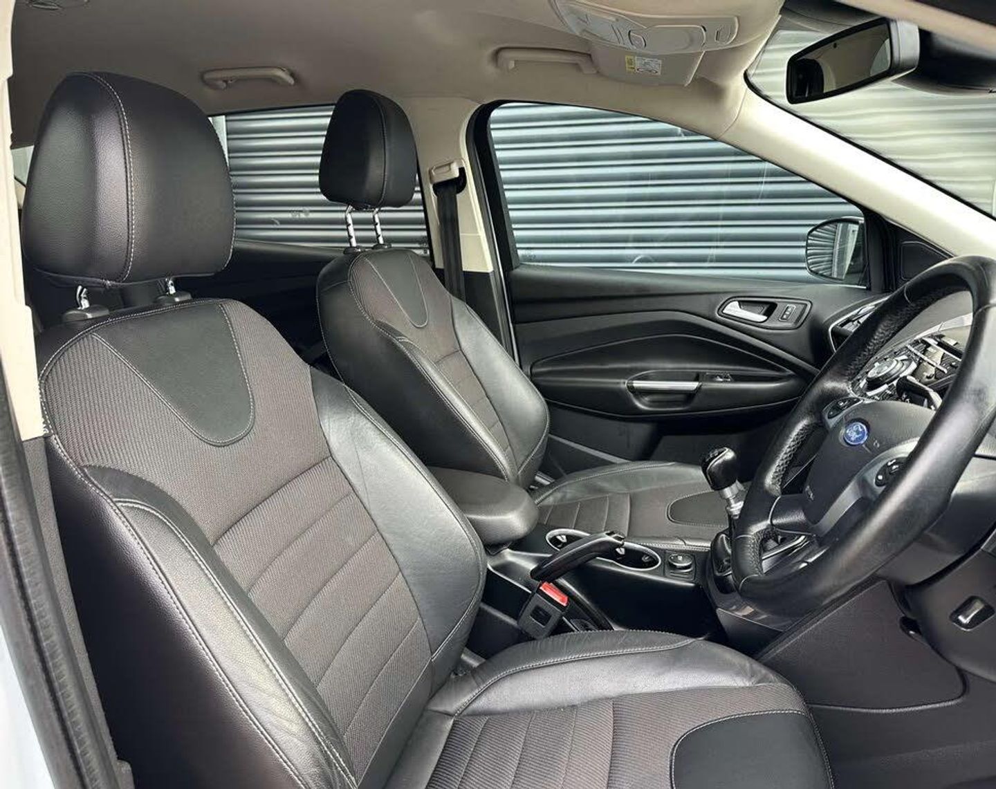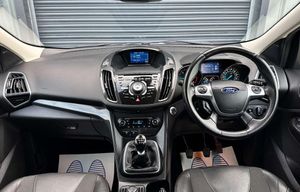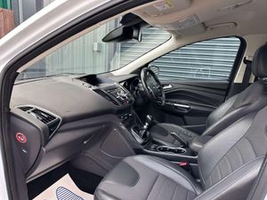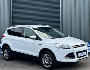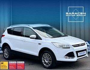 Ford Kuga 2.0 Titanium 4x2 TDCi 5dr. Finished in frozen white with a black half leather interior and contrast stitching.