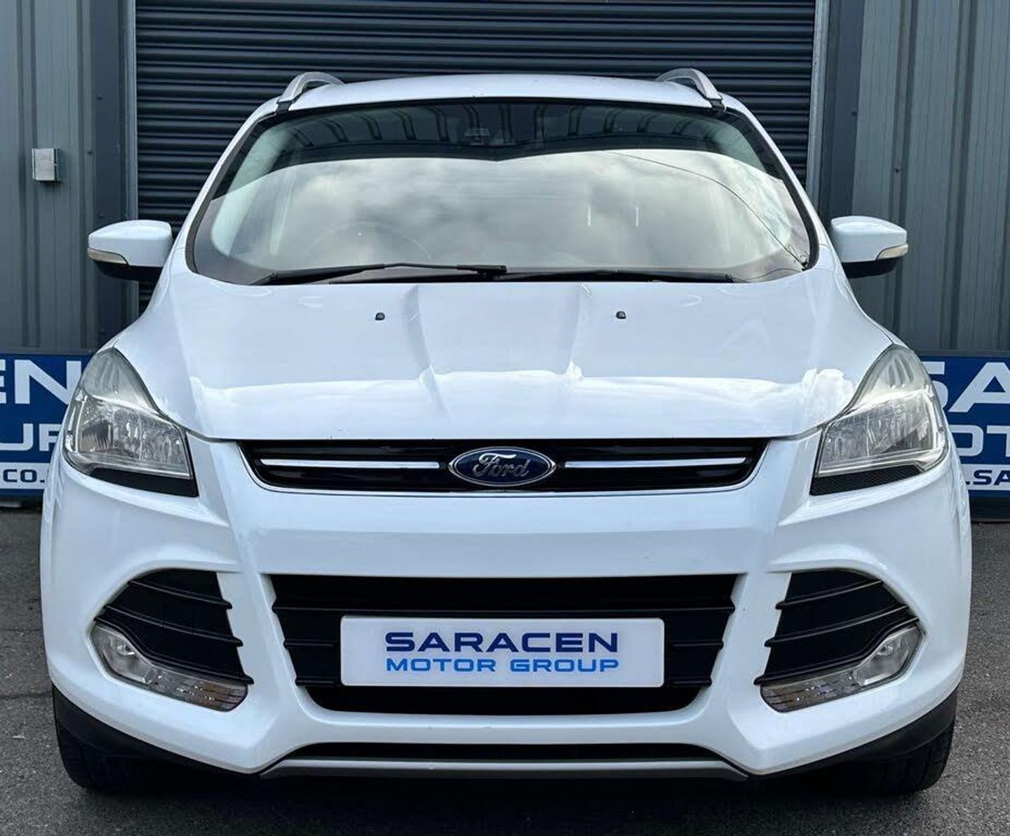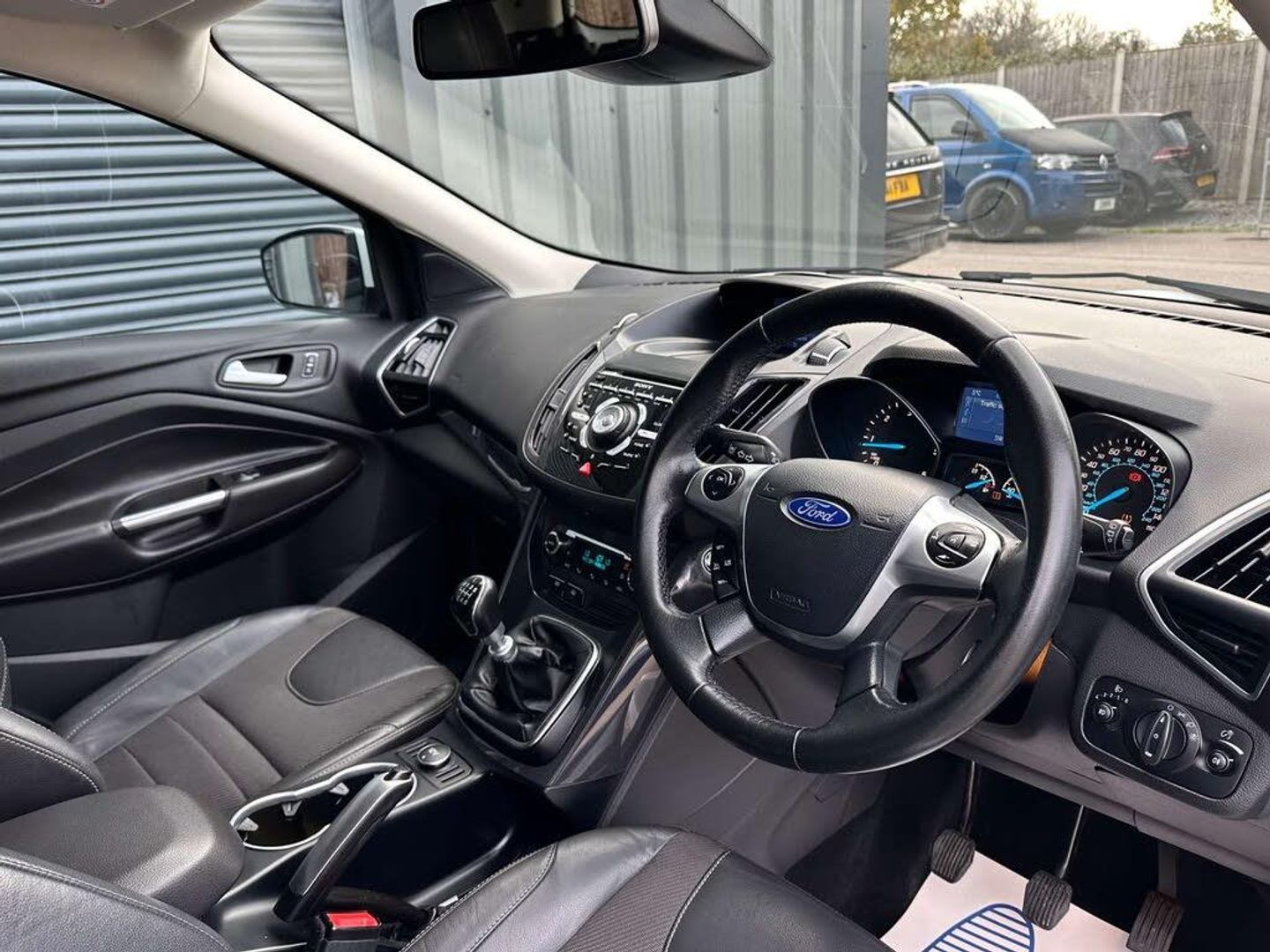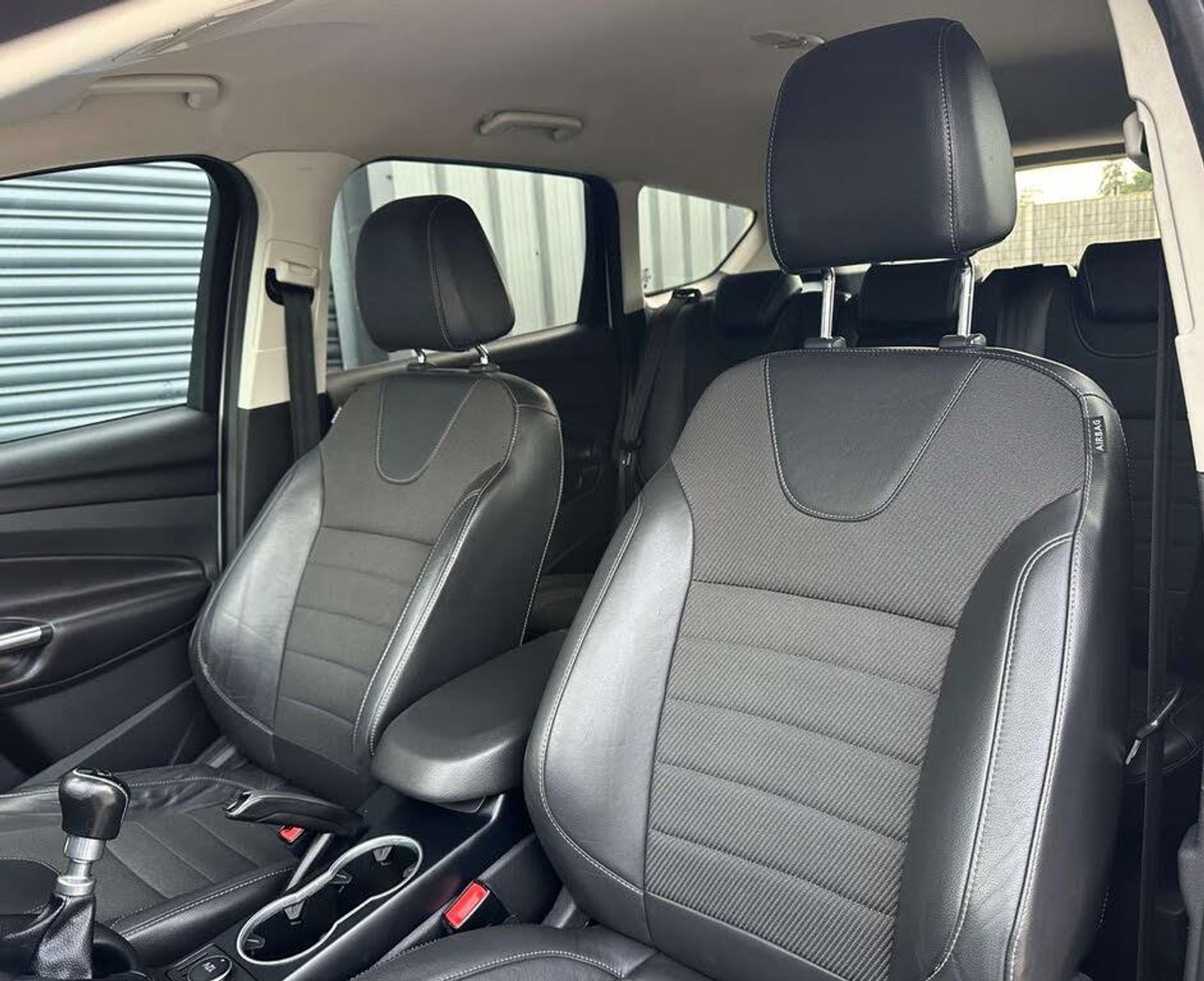 Ford Kuga 2.0 Titanium 4x2 TDCi 5dr. Finished in frozen white with a black half leather interior and contrast stitching.