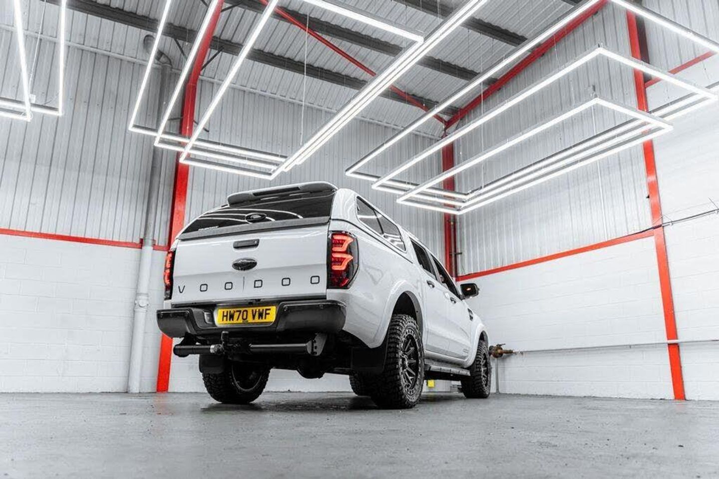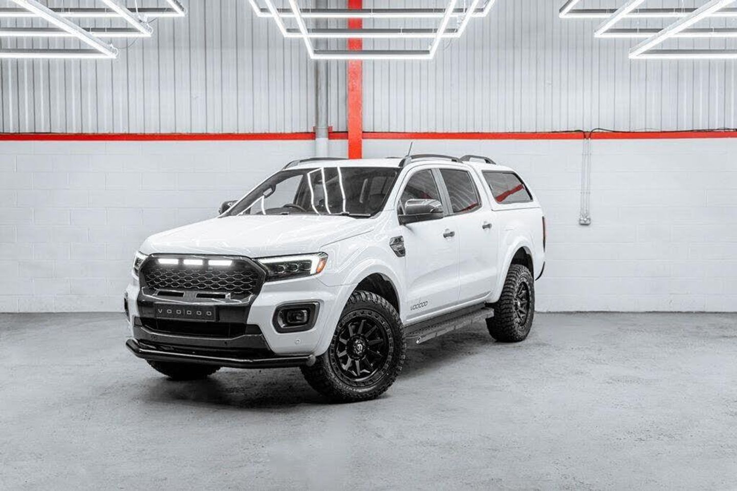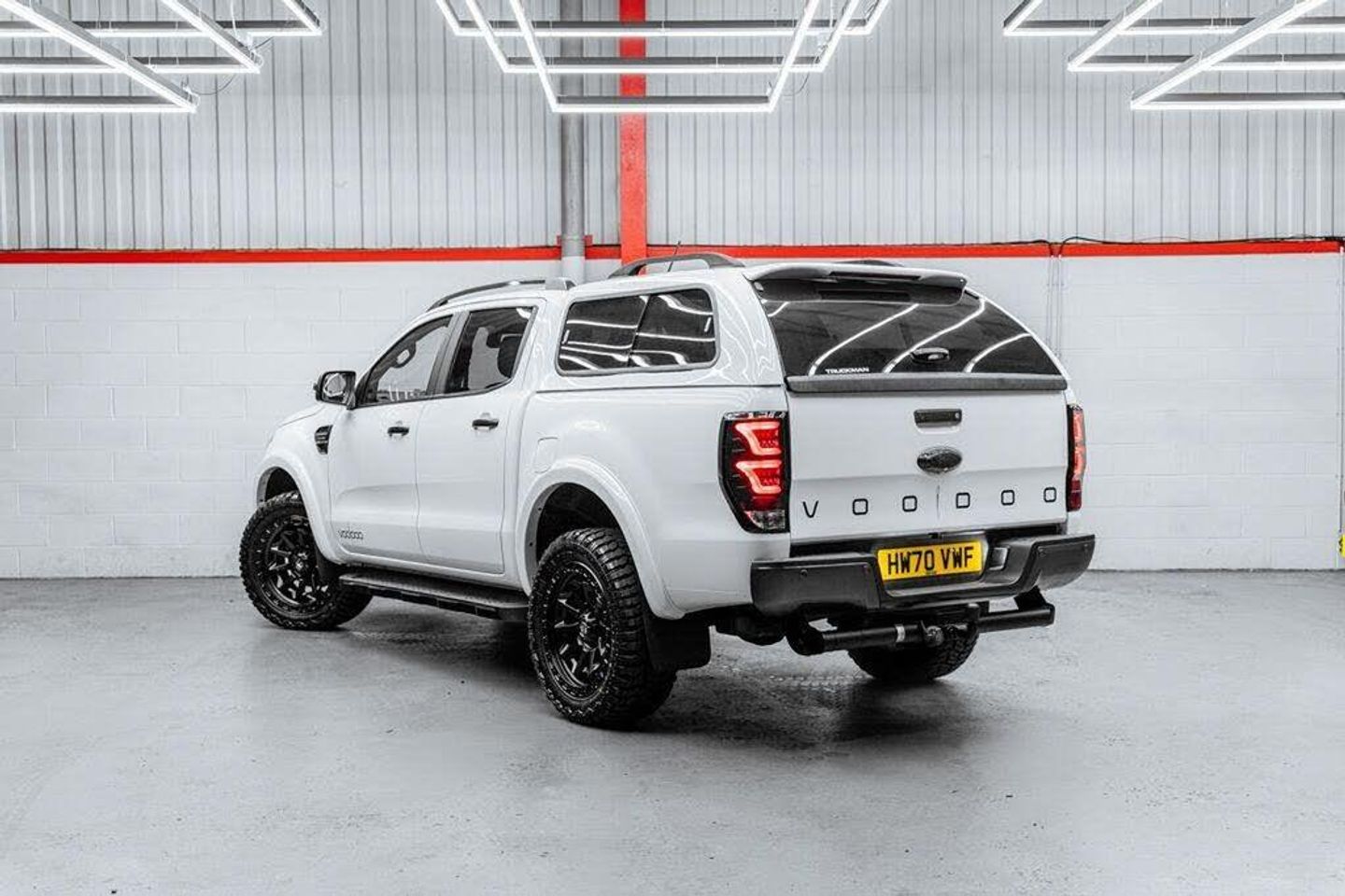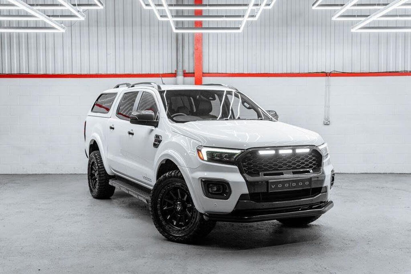UKCVS are delighted to offer another stunning 2020 (70) Ford Ranger 2.0 Wildtrak Auto with our full Voodoo V+ Styling Pack, The Ford Ranger Wildtrak with our Voodoo V+ styling pack strikes the perfect balance between aggressive styling and the uncompromised practicality of Fords class leading 4x4 commercial vehicle. All modifications are carried out to the highest possible standards in our own workshop, using our own parts to completely transform the look of the Ford Ranger whilst still retaining a factory OEM+ look...this is the ultimate pickup truck that really does stand out from the crowd!, Our Voodoo V+ Styling pack consists of... V+ Stealth Grille with Signature DRLs, Voodoo Tri-LED Headlights, Colour Coded Wide Arch Kit , Voodoo Smoked LED Rear Lights, 18 Fuel Covert Wheels , 285/60/18 RT+ Tyres , Smoked LED Indicators , Front Nudge Bar, Voodoo Decals , LED Puddle Lamps , LED Number Plate Lamps, Full Black Pack, This Ranger has been incredibly well looked after by the two previous owners, and is presented in fantastic condition throughout and supplied with a detailed service history and a full MOT, Please note: All commercial vehicles are subject to VAT at 20% unless stated otherwise, Please Note: Whilst we do our best to ensure the accuracy of all of our vehicle listings, some parts of the specification and vehicle data are auto populated and UKCVS accept no responsibility for any errors in this listing. If there is a particular specification feature that you require, please confirm prior to purchasing with a member of our sales team.