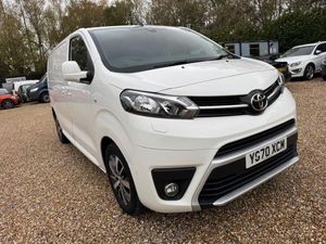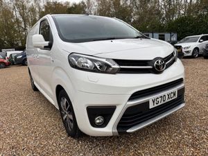 HEADS UP DISPLAY, SATELLITE NAVIGATION, AIR CON, ALLOYS, DAB, APPLE PLAY, CRUISE, SENSORS, MEDIA INPUT, START / STOP & MORE. LOVELY DRIVE, GOOD CONDITION, EXCELLENT SPEC DESIGN MODEL, HISTORY, ULEZ COMPLIANT, FINANCE AVAILABLE & PART EX WELCOMEThis 2020 Toyota ProAce 2.0D Design Medium Panel Van MWB Euro 6 (s/s) 5dr presents an exceptional opportunity with its remarkably low mileage of just 49,000 miles for its age. This practical and reliable panel van is equipped with a fuel efficient 2.0 litre diesel engine and meets Euro 6 emissions standards, contributing to its low CO2 emissions. The D Design trim offers a comfortable and convenient driving experience, featuring a Smart Entry and Smart Start System for effortless access and ignition, a Head Up Display to keep essential information in your line of sight, and a Blind Spot Monitor to enhance safety during lane changes.Further enhancing its appeal, this ProAce includes a Parking Pack with rear sensors to assist with manoeuvring, and a Bluetooth Hands Free System for seamless connectivity on the go. Its low insurance group rating also makes it an economical choice for businesses. These combined features, including the low mileage and low CO2 emissions, indicate that this Toyota ProAce offers excellent value and efficiency compared to other similar vehicles on the market.-ALLOYS + SATNAV + R/CAM