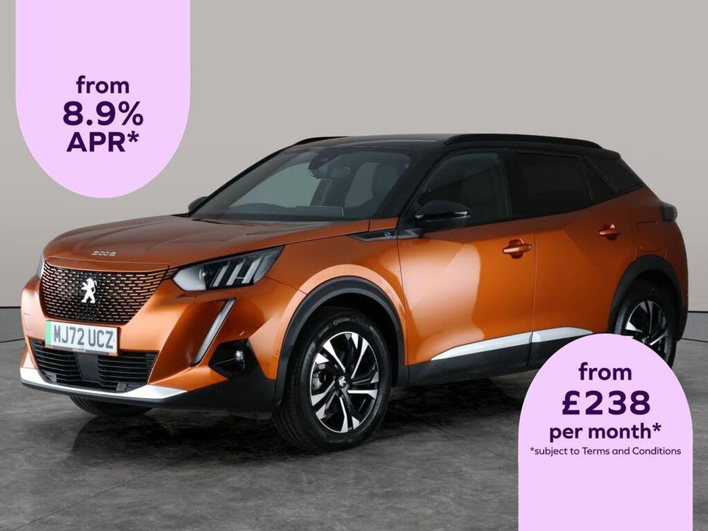Experience the Peugeot E-2008 GT in striking orange, packed with high-end features for a truly modern drive. Enjoy a Head-Up Display for effortless awareness, luxurious heated seats, and seamless connectivity through wireless charging and Apple CarPlay. LED headlights ensure clear night driving, while advanced safety features like Active Lane Assist, Blind Spot Assist, and Traffic Sign Recognition keep every journey secure. Effortless parking comes courtesy of the reversing camera, and the built-in Sat Nav helps you find your way with ease. 3 services recorded, last serviced on 23/10/2025 at 21,410 miles. MOT to 30/10/2026. Visit our website for service history, online valuation, full vehicle specification plus multiple images. This vehicle is VAT qualifying. Any feature/option specified here is from 3rd party data. We cannot guarantee the accuracy of any specification supplied by a 3rd party. We recommend that you physically check the specification of the vehicle on site prior to purchase. This information does not form part of the buying contract. Terms & Conditions apply. We have over 2,000 cars available from our 10 national branches, check our website to see all our stock. Our Trustpilot rating is 4.4/5 with over 9,000 reviews.