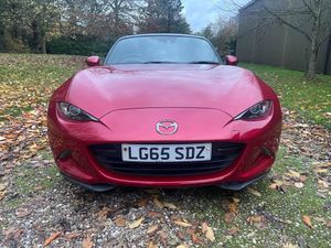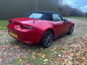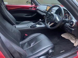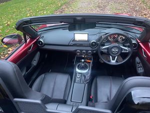 17in Alloy Wheels - Bright Finish, 7in Colour Touch Screen Display, Adjustable Speed Limiter, Aha App and Stitcher App Integration, Air Conditioning - Climate Control, Air Conditioning Dials - Chrome, Air Vent Surrounds - Chrome, Analogue Speedometer, Audio Transfer from Bluetooth Devices, Auto Dimming Rear View Mirror, Automatic Passenger Airbag Deactivation System, Auxiliary - AUX - and Two USB Input, Body Coloured Door Mirrors, Chrome Meter Rings, Coinbox, Convertible Top - Premium Cloth Soft Top with Heated Rear Window - Manually Operated, Cruise Control with Manual Speed Adjustment, Cupholder - Front x2, DHS - Deployable Hood System, Double Pinion Electric Power Assisted Steering - DP-EPAS, Driver and Passenger Front Airbags, Dual Exhaust System, Dusk Sensing Automatic Headlights, Dynamic Stability Control - DSC - with Traction Control System - TCS, Electric Windows - One Touch Auto Down, Electrically Adjustable-Heated Door Mirrors, Emergency Tyre Repair Kit, Engine Start-Stop Button, Fashion Bar Cladding, Four-Wheel Anti-Lock Braking System - 4W-ABS with Electronic Brake-Force Distribution - EBD, Fuel Filler Lid - Body Colour, Gear Knob - Leather with Chrome Surround, Gear Shift Indicator, Handbrake - Leather Wrapped, Headlights - Adaptive Front Lighting System, Headlights - Coming-Leaving Home, Headlights - LED with Auto Headlight Levelling, Heated Seats, Hill Hold Assist, ISOFIX Child Seat Anchorage - Passenger Seat, Inner Door Handles - Chrome, Integrated Bluetooth, Interior Courtesy Light, Interior Upper Door Trim - Body Coloured, LED Daytime Running Lights, LSD - Limited Slip Differential, Lane Departure Warning System, Multimedia Commander, Multimedia System, Rain-Sensing Front Wipers, Rear Brake Light - High Mounted, Rear Parking Sensors, Remote Central Locking with Deadlocking and Remote Boot Release, SKYACTIV-Body Engineered Triple H Body Structure to Help Protect Occupants from Impact Forces, SRS - Supplementary Restraint System, Satellite Navigation System, Seatbelts - 3 Point - ELR - 2x with Pre-Tensioners, Seatbelts - Reminder Screen with Audible Warning, Seats - Drivers Manual Slide-Recline and Tilt Adjustment, Seats - Front Passenger Manual Slide and Recline Adjustment, Side Airbags, Side Door Trim - Black with Red Stitching, Smart Keyless Entry, Sports Suspension, Steering Wheel - Leather with Chrome Bezel, Steering Wheel - Mounted Audio and Bluetooth Controls, Steering Wheel - Tilt Adjustment, Storage - Rear Centre Box with Lockable Lid, Sunvisors - Drivers and Passengers with Covered Vanity Mirror-Ticket Holder, Thatcham Category 1 Alarm and Immobiliser, Trip Computer, Tyre Pressure Monitoring System, USB - iPod Connectivity, Windblocker, 2 keys, full mazda service history