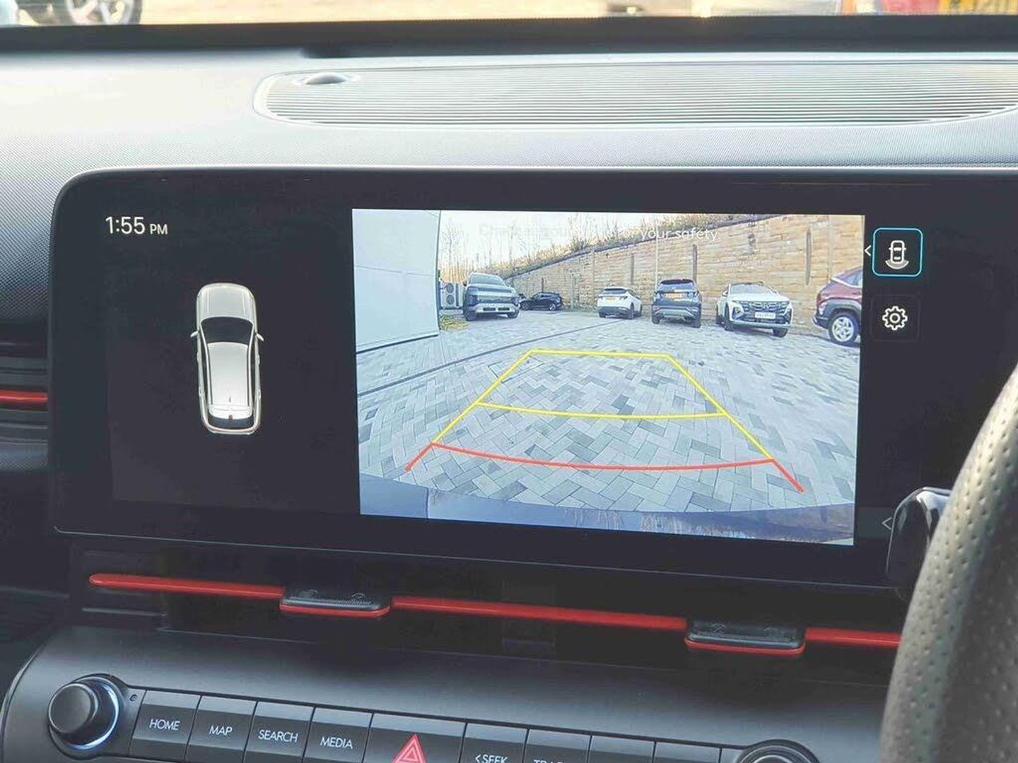 10.25" touchscreen centre console display satellite navigation with live services and mapcare, Bluetooth connectivity with voice recognition, Digital clock, Driver attention warning, Driver supervision instrument cluster with 12.3" LCD display, eCall emergency call system, Forward collision avoidance assist (FCA 1.5) - Car,pededstrian,cycle and junction turning, Front parking sensor, Head up Display, Intelligent speed limit assist, Lane follow assist, Lane keep assist, Leading vehicle departure alert (LVDA), Parking system with rear camera and guidance system, PAS, Rear parking sensor, Roadside assistance, Smart cruise control with stop and go functionality, Smartphone integration compatible with Apple CarPlay and Android Auto, Windscreen washer fluid sensor and warning indicator, Wireless phone charging pad, 2 front USB C and 2 rear USB C charging points, DAB Digital radio, Speakers - Front,rear and tweeters, Steering wheel audio,phone and cruise controls, Auto dimming rear view mirror, Automatic headlights with dusk sensor, Automatic windscreen wipers with rain sensor, Body colour bumpers, Body colour exterior door handles, Body coloured wheel arch inserts, Door mirror LED indicator lights, Electric front windows with anti-trap mechanism and one touch control, Electric rear windows, Electrically adjustable and heated door mirrors, Full LED MFR headlights, Gloss black door mirrors, LED daytime running lights, LED rear lights, Power folding door mirrors, Privacy glass - Rear windows and tailgate, Rear roof spoiler with integrated LED brake light, Rear side wing doors, Rear wiper, Roof rails, Solar glass with front door glass and windscreen, Tinted glass in front and rear doors, Windscreen auto defog function, 12V power outlet in front console, 2 zone climate control, 3 seat bench in 2nd row, 40/20/40 split folding rear seat, Adjustable head restraints, Aluminium pedals, Ambient lighting, Cloth upholstery, Driver and passenger front seat pockets, Driver's seat electric lumbar support, Driver's seat height adjustment, Driver/passenger sunvisors and illuminated vanity mirrors, Front passenger seat manual adjustments, Heated front seats, Heated rear seats, Heated steering wheel, Height/reach adjustable steering column, Isofix rear child seat fastenings, LED centre interior light, LED front interior light, Luggage compartment LED lighting, Metal paint effect interior door handles, Parcel shelf, Rear centre armrest, Rear centre console with air vents, Shift by wire SBW, Single front passenger seat, Vertical adjustment rear head restraints, N Line exterior design pack - Kona, Trailer wiring package - Kona, Airbag - front,front side,curtain and centre front airbag, Anti-lock brake system (ABS), Childproof rear door locks, Downhill brake control, EBD + Brake Assist, Electric parking brake, Electronic stability control, Fasten seatbelt reminder, Fixed 3 point for second row centre passenger seatbelt, Front seatbelt pretensioners, Height adjustable front seatbelts, Hill start assist control (HAC), Passenger airbag deactivate switch, Rear seat alert, Traction control, Tyre pressure monitoring system, Alarm/immobiliser, Deadlocks, Folding key, Locking wheel nuts, Remote central locking, Smart key with keyless entry and engine start/stop button, Temporary mobility kit (TMK)