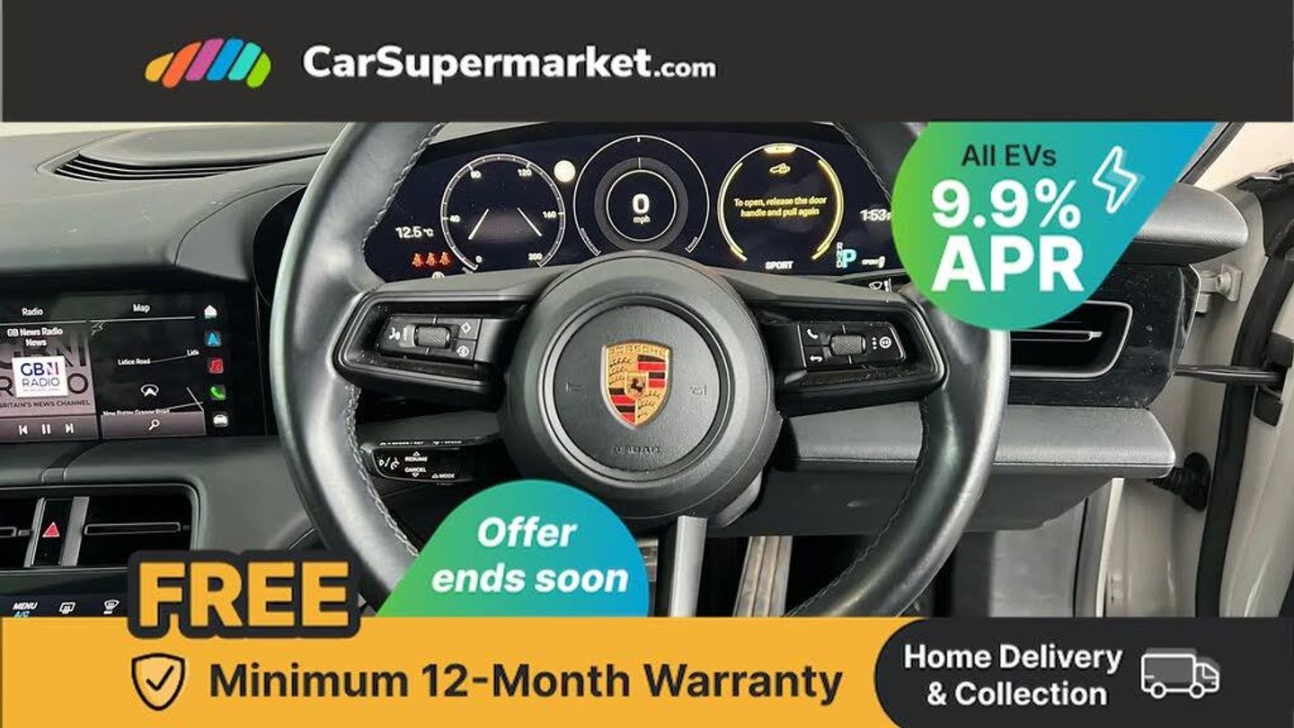 Traffic Sign Recognition, Sat Nav, Apple CarPlay, Wireless Phone Charging, Digital Radio, Panoramic Roof, Electric Door Mirrors, Privacy Glass, Leather Upholstery, 19" Alloy Wheels;This 2021 Porsche Taycan Performance Plus 4S is fitted with many desirable features, such as a fixed glass panoramic roof, 19 inch Taycan Aero alloy wheels, privacy glass, premium "crayon" paintwork and Porsche Connect with Apple CarPlay. The vehicle boasts a full service history and was last serviced on 5th August 2025 at 23,673 miles, and the MOT remains valid until August 2026. This Taycan has covered a low mileage of just 24,631 miles for its age. The Taycan 4S Performance Plus variant truly excels, offering an exhilarating 0 to 62mph acceleration time of just 4.0 seconds, demonstrating its high performance.
